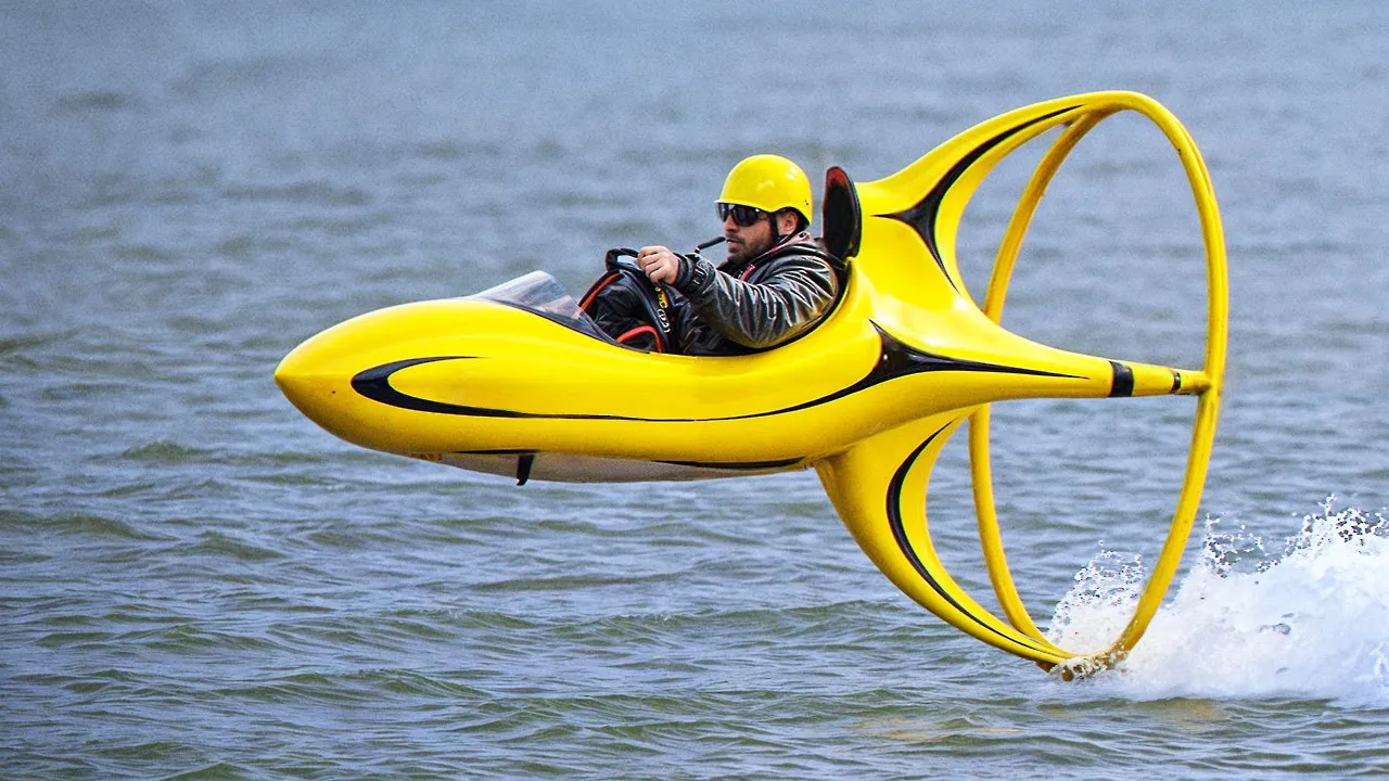 3 m above the water and Zips along at 30 km an hour with less than an hour of training you'll not only be cruising in style but also stealing the spotlight at every [Music] Beach no list of flying inventions would be complete without the Cavite X5 though still a 50% scale prototype it's hybrid electric engine already allows it to fly up to 500 km at speeds of 350 km an hour the name Cavite gives it an extra sci-fi Edge suggesting it not only defies gravity but turns it into an ally the x5's wings feature a