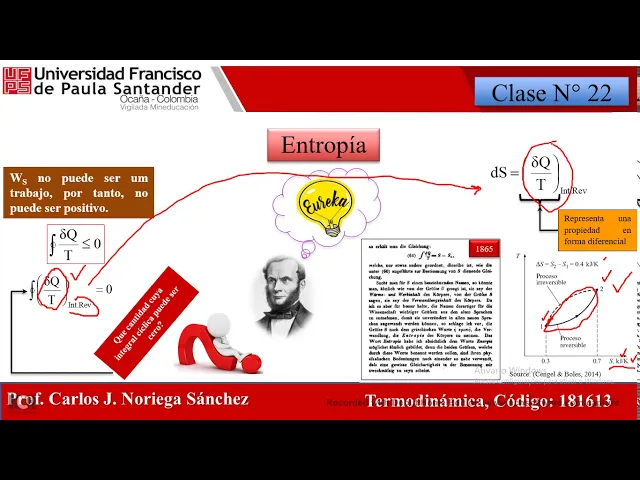 bueno en la continuación de los del contenido programático de la materia vamos a darle continuidad a esta introducción al concepto de entropía sus implicaciones y cómo vamos a determinar esa entropía y cómo éstas se generan durante un proceso listo para ello en este tema vamos a abordar la entropía como tal de donde se origina cuál es la formulación matemática postulado por rudof clausus el principio del incremento de entropía y vamos a cerrar este tema apasionante tema con algunas conclusiones relevantes con relación a la entropía y la generación de entropía entonces en la segunda ley de