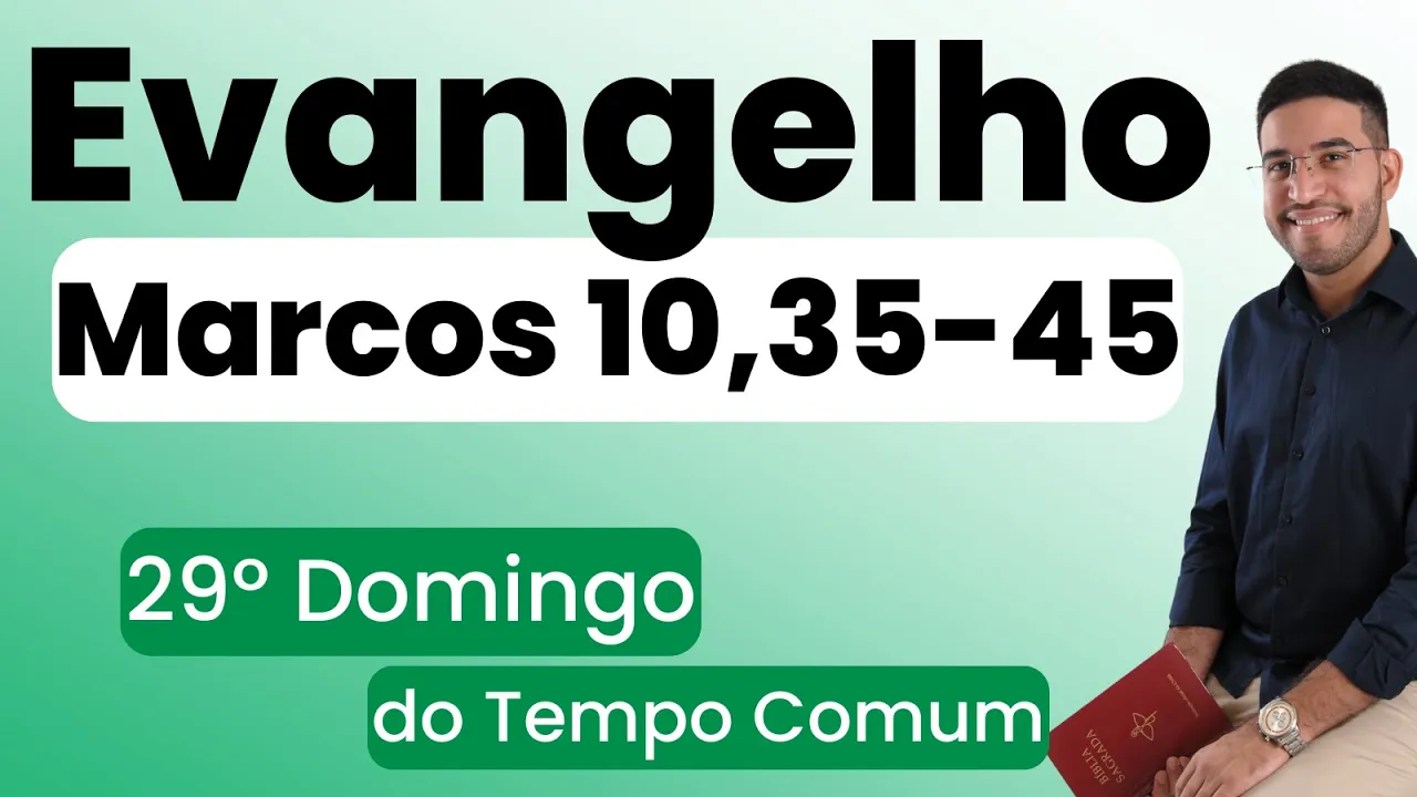 em nome do pai do filho e do Espírito Santo amém amados irmãos e irmãs é com muita alegria que nós estamos aqui para juntos a estudar e meditar o evangelho que a igreja nos apresenta para este domingo que é o 29º domingo do tempo comum do ano B o texto deste domingo se encontra lá em Marcos 10 35 até o Versículo 45 que nos fala assim naquele tempo Tiago e João filhos de Zebedeu foram a Jesus e lhes disseram mestre queremos que faça faças por nós o que vamos pedir ele perguntou o que quereis que