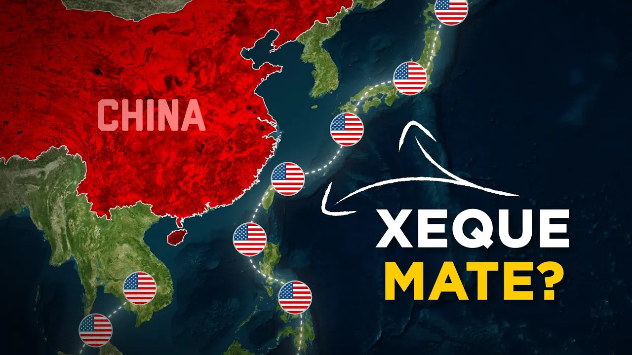 após 33 anos do evento da Guerra Fria duas potências mundiais estão novamente um clima de tensão constante China e Estados Unidos apesar da distância de ambos os países ser de aproximadamente 9. 600 km a sua rivalidade está mais perto do que nunca uma espécie de barreira militar em forma de arco foi formada ao redor do país chinês divididos basicamente pelo mar da China Meridional em uma distância média de aproximadamente 1360 km onde se encontram bases militares Americanas no Pacífico esse caso está caminhando para uma verdadeira Guerra Fria sobre o mar mas ao contrário da Guerra Fria esta tensão poderia realmente ocasionar um conflito se isso ocorrer Japão Coreia do Sul China e Estados Unidos estão diretamente [Música] ameaçados os Estados Unidos estão neste momento instalando bases militares em diversas ilhas do indo-pacífico guan é um exemplo território americano no Oceano Pacífico localizado a cerca de 2500 Km da Costa chinesa com a base militar de Anderson Air Force base uma importante base aérea para a projeção de poder dos Estados Unidos na região é uma das mais militarizadas fora da América do Norte a ilha contém cerca de 6. 000 militares americanos já o Japão apesar de ser um forte parceiro comercial da China também está sendo fortemente militarizado pelos Estados Unidos então vamos mapear essas Ilhas a Sudoeste de Tóquio na região de canaga está localizada a base naval de yokosuka é uma das maiores bases Navais dos Estados Unidos fora do seu território e a maior localizada no Pacífico ocidental ocupando cerca de 800 haes de área contendo mais de 18.
