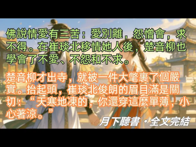 完結小說【柳枝折盡減春風】佛說情愛有三苦:愛別離,怨憎會,求不得。在崔琰北移情她人後,楚音柳學會了不愛、不怨和不求。#楚音柳 #崔琰 #一口氣看完 #完整版 #古言小說 #小說 #爽文 #故事 #完結