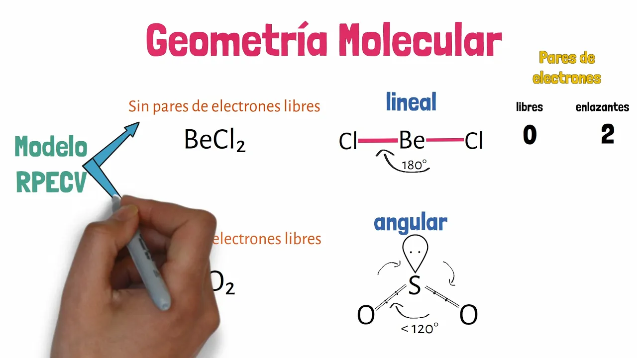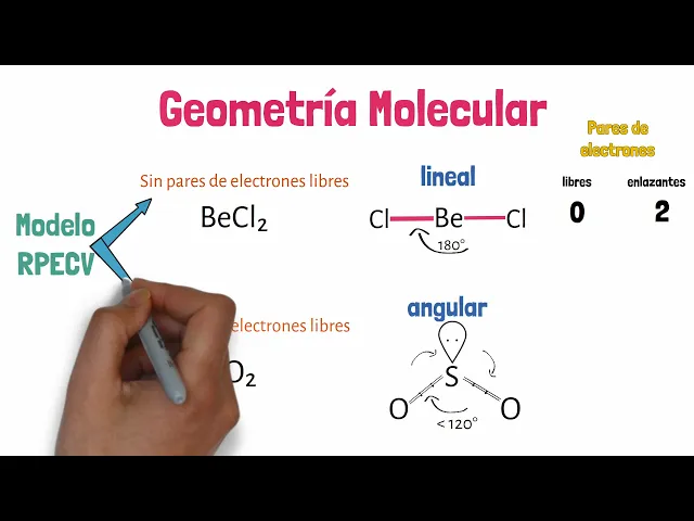 para indicar la geometría que le corresponde que en este caso es angular entonces esto se va a hacer con todas las moléculas o iones para indicar su geometría [Música] para esta geometría con átomos libres la variedad de geometrías aumenta debido a que pueden haber más del par de electrones libres en el átomo central y esto ocasionará posiciones y ángulos diferentes esto dependerá del tipo de molécula [Música] si te gustó este vídeo dale like y suscríbete no olvides dejar tus comentarios ayúdanos a saber de qué temas quieres que hablemos nos vemos hasta el próximo vídeo [Música]
