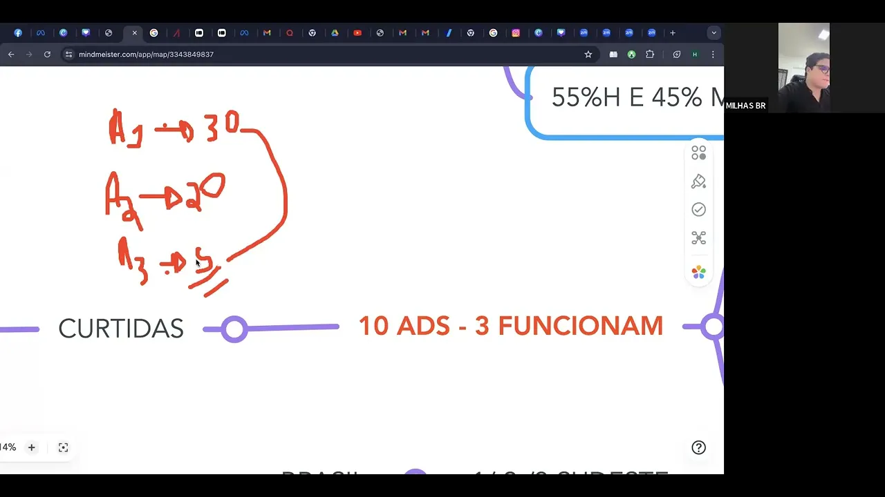 porque elas se elas se correlacionam tá bom então aí perfeito perfeito muito bom esse pamento aí mas aqui no mercado hoje resum para vocês sempre analisar o clique custo médio não passar 0,60 certo a 0,65 em relação ao peixo do clique certo não deixar um sexo assim com uma discrepância muito alta analisar as curtidas ti a cim que que ter muito inferior em relação a maior como também olar tá puxando pra cidade que você colocou né E caso seja Brasil todinho puxar pro Sudeste e analisar tá seguidor ver quanto seguidor está gerando e está do