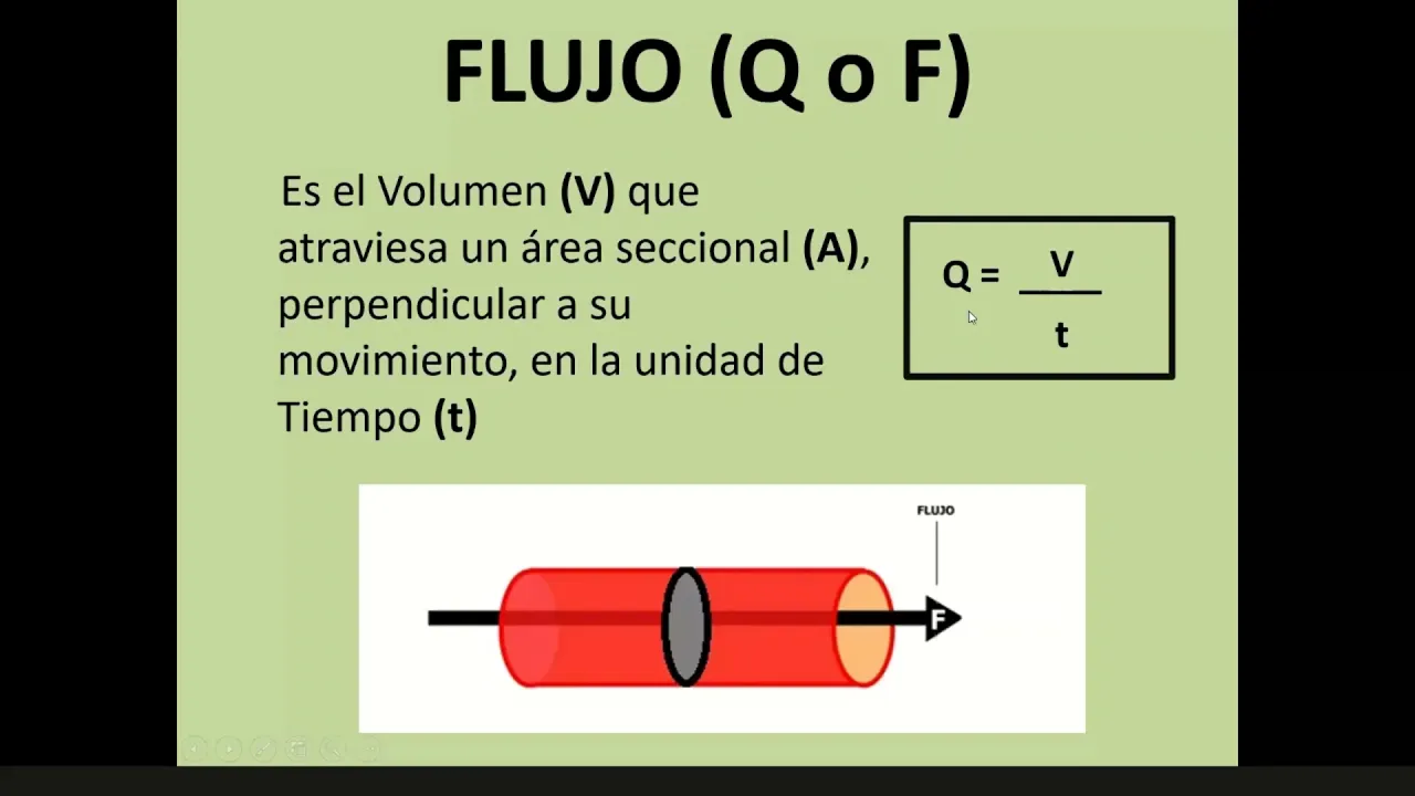 hablamos de flujo o caudal Estamos hablando del volumen que atraviesa un área seccional perpendicular a el movimiento en la unidad de tiempo esta es una definición sencillita que se le puede añadir mucho más pero siempre está bueno tener alguna definición cortita como para poder decir algo si necesitamos hablar de flujo en este caso entonces bueno ya tener en cuenta que cuando vamos a hablar del flujo vamos a tener en cuenta el volumen Área seccional y la unidad de tiempo con estas tres y vamos a agregar ahora con la ley general del flujo otras consideraciones qué