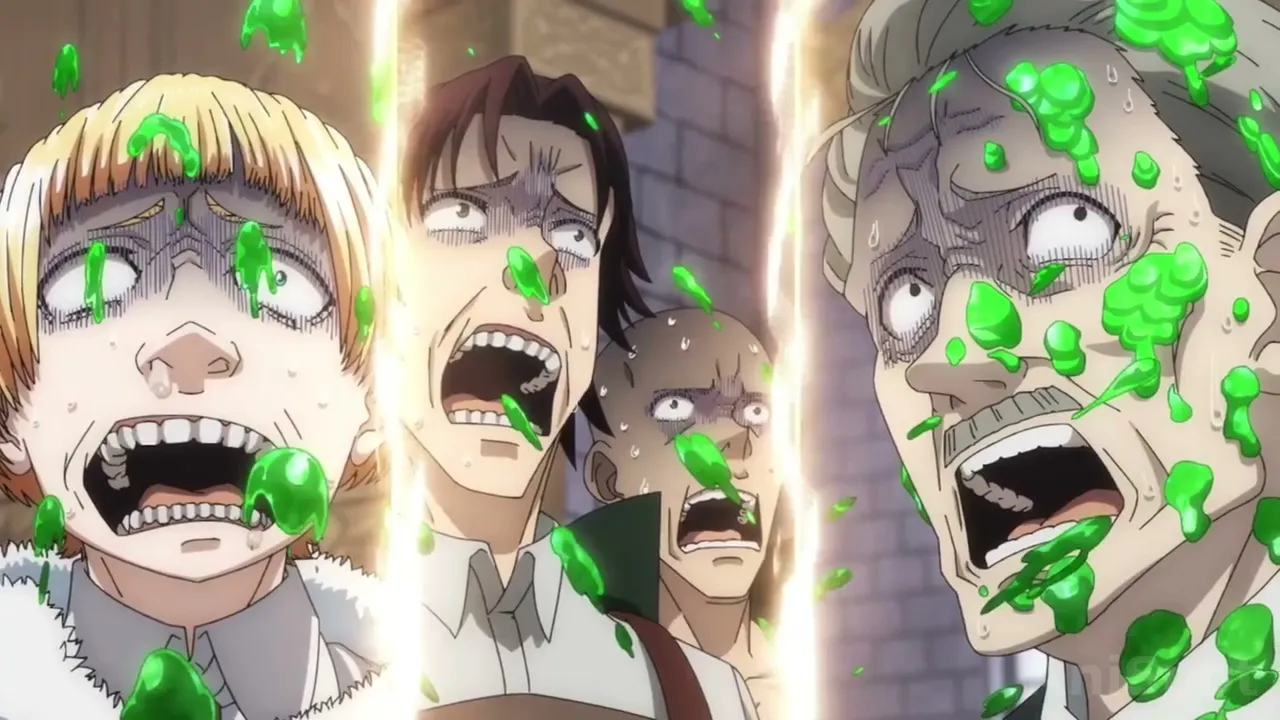 to let Alisa fall victim to Miz's perverted intentions just then Rick steps out into the arena soen asks reinette how she thinks Rick will do in the exam she confidently says Rick will pass the exam without incident but Alisa doesn't think he'll be that easy she says raster is an A- rank Adventurer and He is known for using excessive force to beat down the e- rank Adventures but if raster is just a rank then broon is sure Rick won't have any trouble as the fight is about to begin Angelica and a badly injured free cheer
