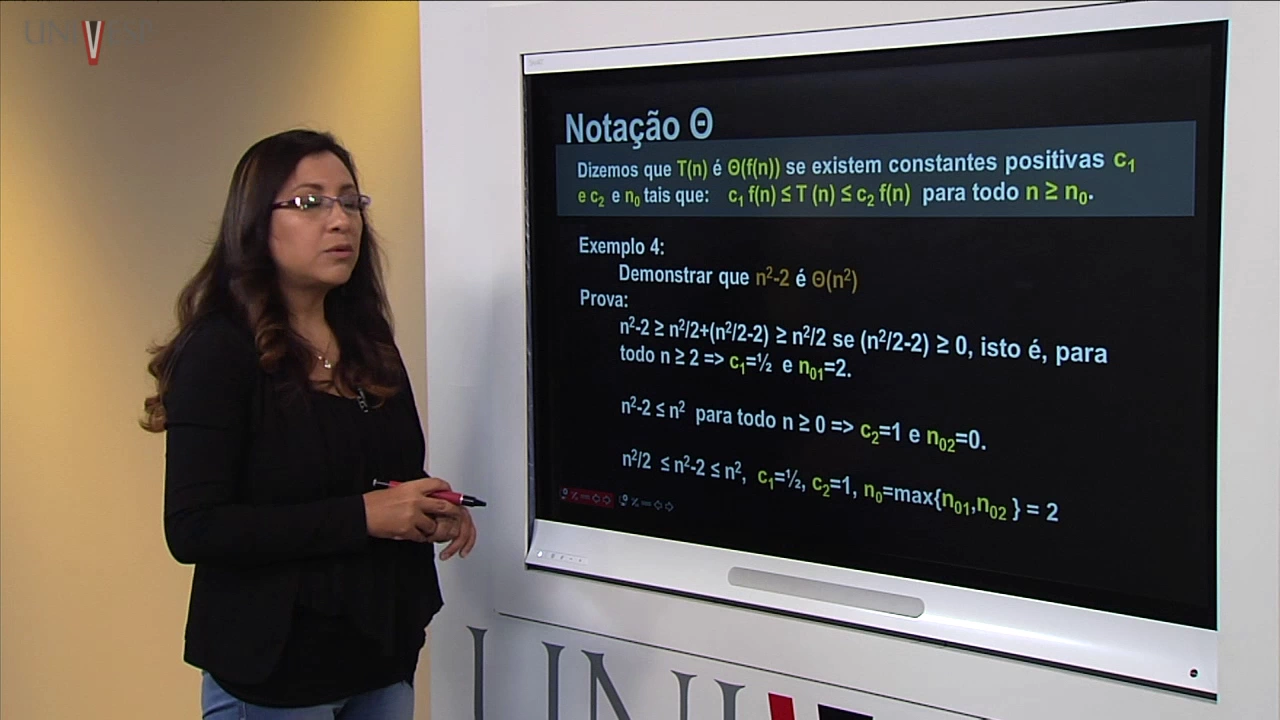 [Música] Há pes sean benvidos a nosa tercera aula de proyecto y anális de algoritmos n esa aula veremos anotación omega y teta realizaremos también algunos ejercicios como ya veron aula anterior a gente precisa Fer algunas manipulaci matemáticas y precisamos también lembrar alguns conceitos matemáticas ent vamos relembrar algumas eh propiedades matemáticas que precisamos saber alén de mostrar ejercicios adicionales de anotación Omega teta y o como ya vimos la aula pasada Existen tres tipos de comparación asintótica para qué Para comparar funciónes que representan o consumo de tempo de noso algoritmos existe a comparación con sabor menor igual