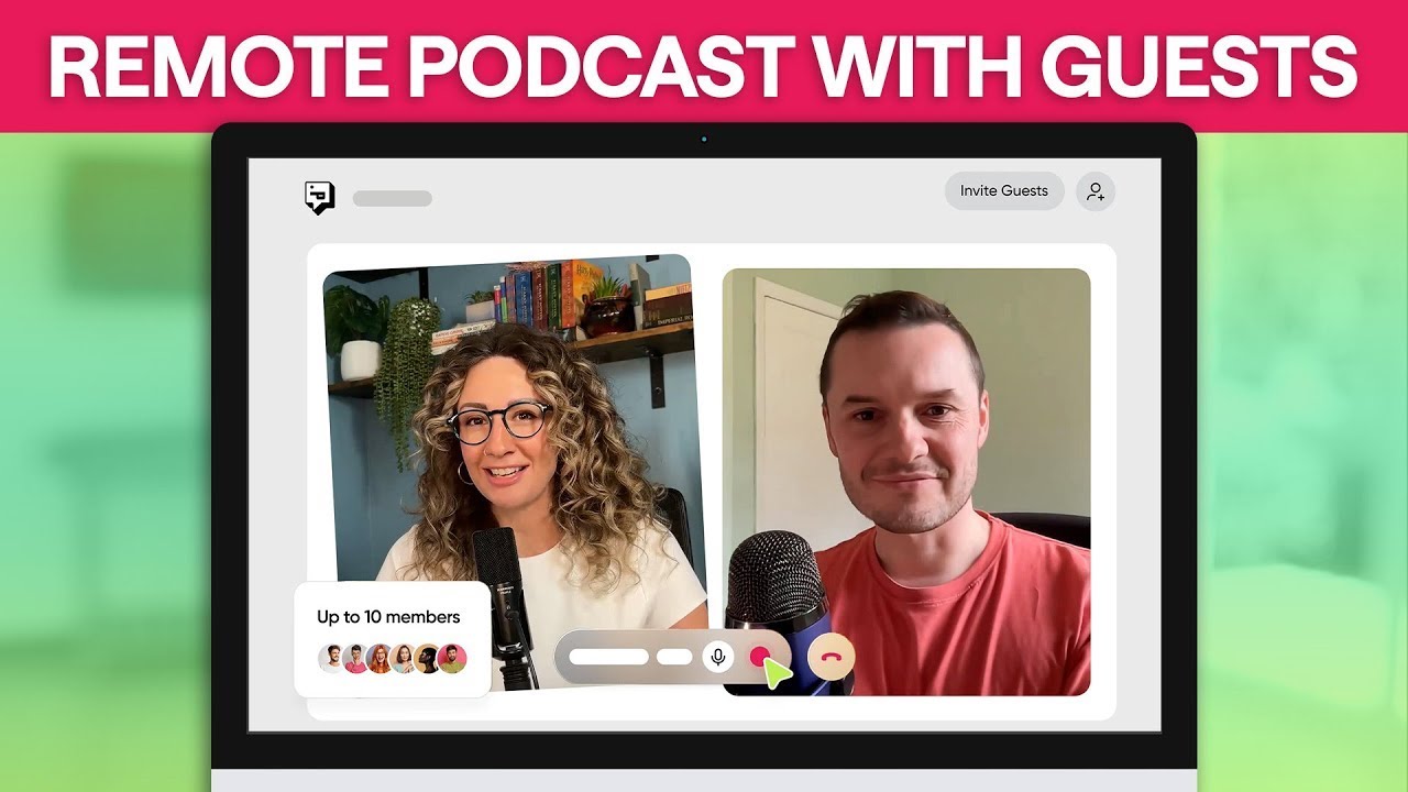 it here or feel free to send it to your guest via email once all guests are in the studio and you're ready to roll just click that red record button don't worry you'll get a 5-second countdown before the recording begins to take care of any last minute pring if you're recording an episode and need to stop for a bit whether it's to get food or make sure your dog hasn't destroyed your new rug just click stop at the bottom confirm your selection and start back up again whenever you're ready you can also invite a guest