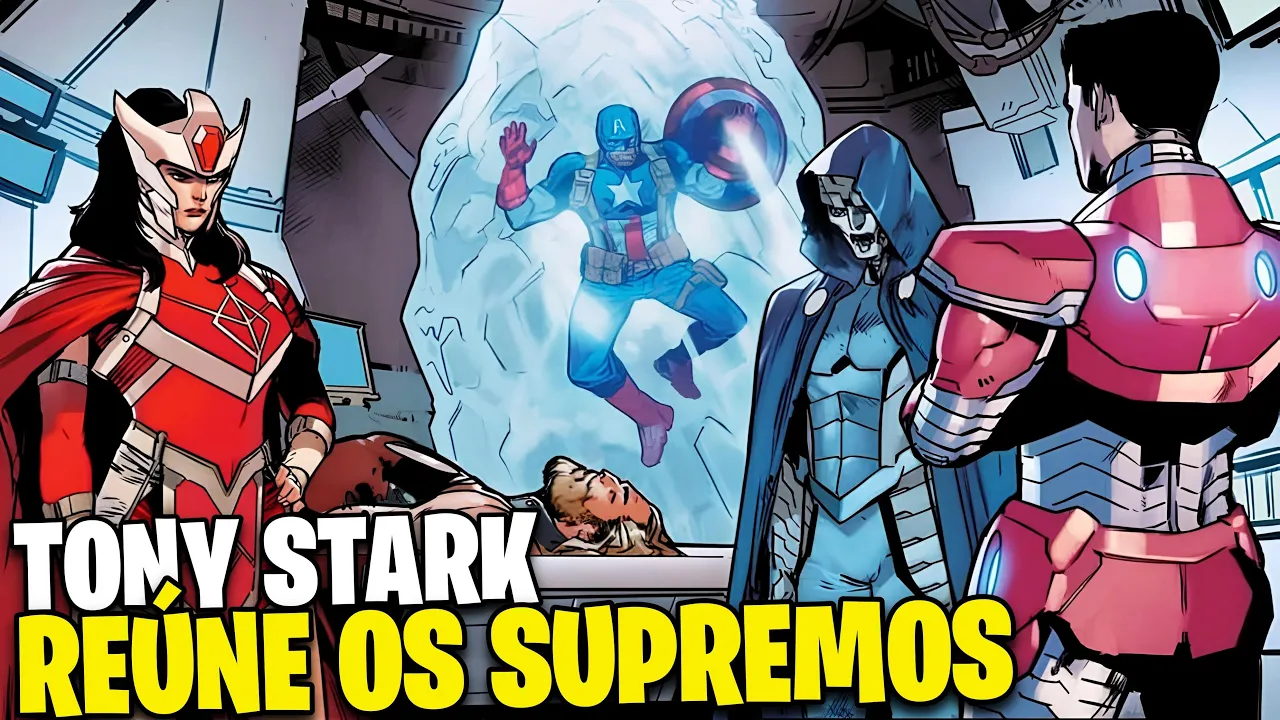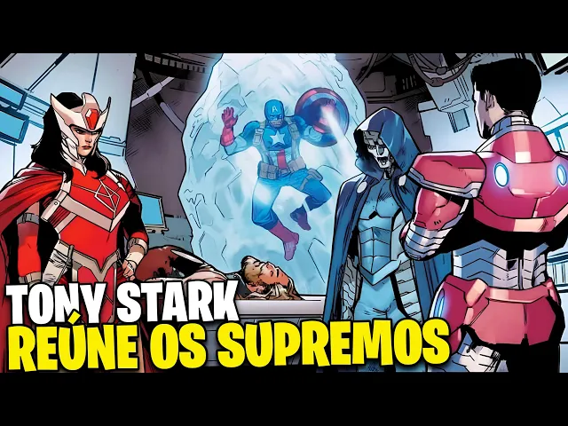 morreram no ataque à torre Stark os responsáveis pelo ataque agora controlam o planeta e a narrativa todos pensam que Os Supremos são terroristas violentos e como se isso não fosse ruim o suficiente o aliado mais poderoso da equipe está ferido e o outro ainda está preso no gelo Além disso daqui a 18 meses o criador vai escapar destino insiste que tudo isso é uma bagunça mas Tony não pensa assim eles têm uma máquina do tempo e podem consertar tudo por enquanto a equipe está se escondendo em um satélite clandestino da stain Stark em outro lugar