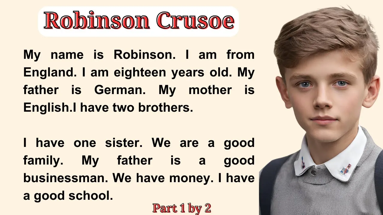 Robinson cruso chapter 1 family my name is Robinson I am from England I am 18 years old my father is German my mother is English I have two brothers I have one sister we are a good family my father is a good businessman we have money I have a good school I have a good life but I have a dream I want to travel I want to see the world my father is a good man he wants the best for me but my dream is not his dream he is not happy the situation is not