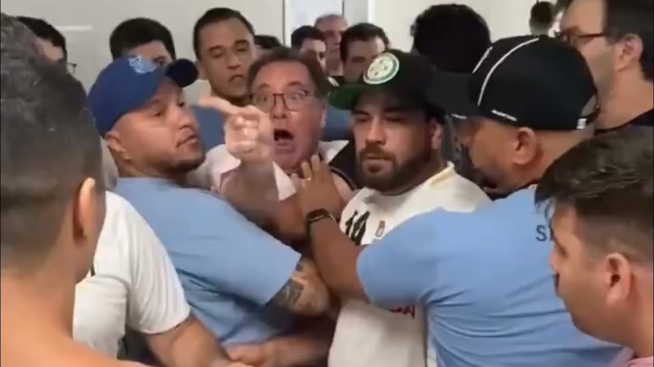 em campo acho que foi na beira do campo acho que foi tem vários vídeos do Marcelo aí ele tem muito problemas com contatos físicos preciso lembrar você Marcelo que o jogo que você joga é o jogo da vida pública e no Jogo da Vida pública tem dia que você tá de saco cheio da vida claro todo mundo tem um dia assim né ou vários dias assim você tá de saco cheio da vida você não quer ver ninguém você não quer ouvir ninguém você tá frustrado você tá chateado você tá deprimido Você tá irritado você tá