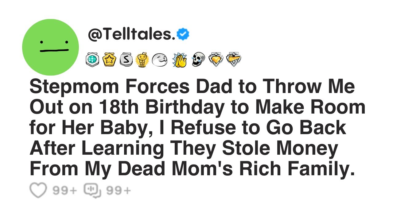 neglectful dad and evil stepmom tried to kick me out of my own house to give it to my spoiled pregnant stepsister because her boyfriend left her and she is nothing my m34 miserly self-centered and usually absent dad m62 has recently found out how much I'll earn and shockingly so he has decided to kick me out of my own house all in the name of family Ash f29 my stepsister and daddy's little gem who does nothing wrong ever has magically gotten pregnant and obviously with her very self-reliant goals of being an escort and an only fans