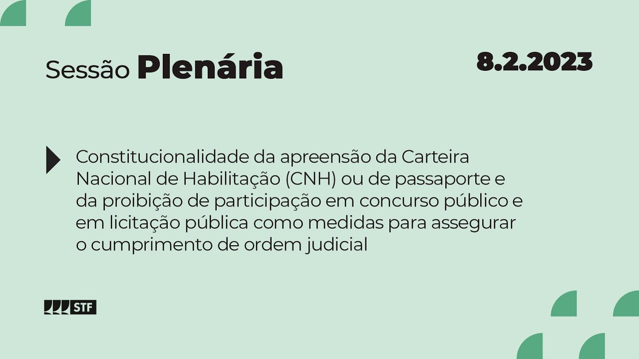 lei número 13.105 de 2015 o nosso código de processo civil cuida-se portanto de aferir a constitucionalidade das medidas indutivas coercitivas mandamentais ou sub-rogatórias necessárias assegurar o cumprimento da ordem judicial inclusive nas ações que tenham por objeto prestação pecuniária como prevê o artigo 139 do CPC o autor desta di pretende que por meio da declaração de nulidade sem redução de texto essa Suprema corte afaste a possibilidade de imposição das seguintes medidas executivas atípicas apreensão de carteira nacional de habilitação ou suspensão de Direito de dirigir a pressão de passaporte proibição de participação em concurso público proibição de