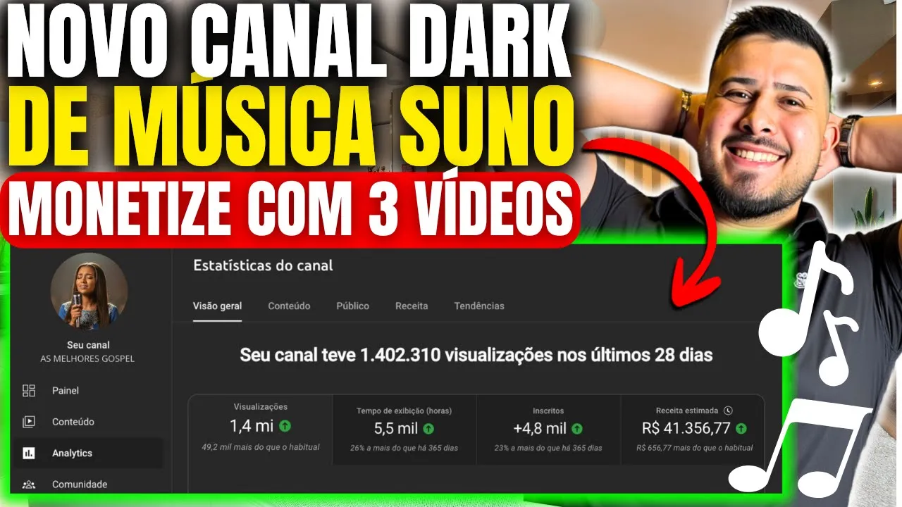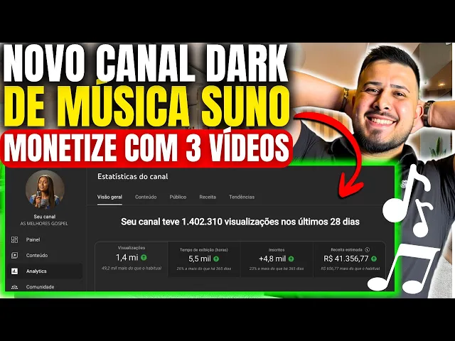 Vou te passar hoje o que é que tá dando certo em canais darks de música para que você consiga não só monetizar rápido, mas conseguir fazer muito dinheiro no conforto da sua casa. Talvez você já saiba que Canal Dark de música através do Suno é uma das melhores oportunidades para você fazer dinheiro aí estando no conforto da sua casa, sem que você precise aparecer, sem que você precise mostrar a sua voz de uma forma muito simples e rápida. Agora, o que talvez você não sabia é que existe um prompt secreto.