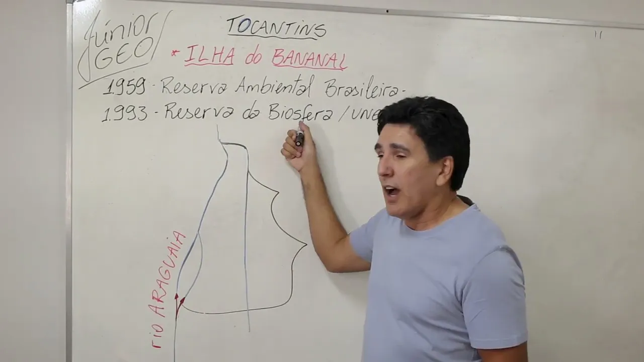fiz uma dicas do gel para você ser aprovado agora falando sobre a Ilha do Bananal [Música] maior ilha fluvial do planeta 100% localizado em território Tocantinense Ilha do Bananal que inicialmente quando descoberta ainda em 1773 foi denominada a ilha de Santana depois é claro passou a se chamar Ilha do Bananal Professor o que eu preciso saber que desde 1959 A Ilha do Bananal se torna reserva ambiental brasileira que desde 1993 A Ilha do Bananal pela Unesco se torna é considerado uma reserva lá biosfera a Ilha do Bananal é o que mais eu preciso saber é