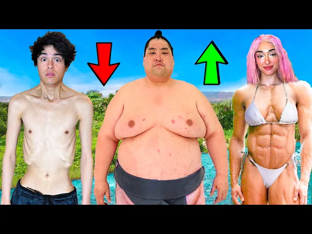 in this video we're doing an extreme who can lose the most weight versus gain the most weight challenge we divided eight people into two teams and each day both teams will have to go through an extreme workout challenge or an extreme eating challenge at the end of The 100 hours whichever team gains or loses the most weight splits $50,000 now let's see how much each team weighs so our team's losing weight and our combined weight is 8113 lbs it's about time you lose weight especially Alex and Tanner damnn and our team is trying to gain