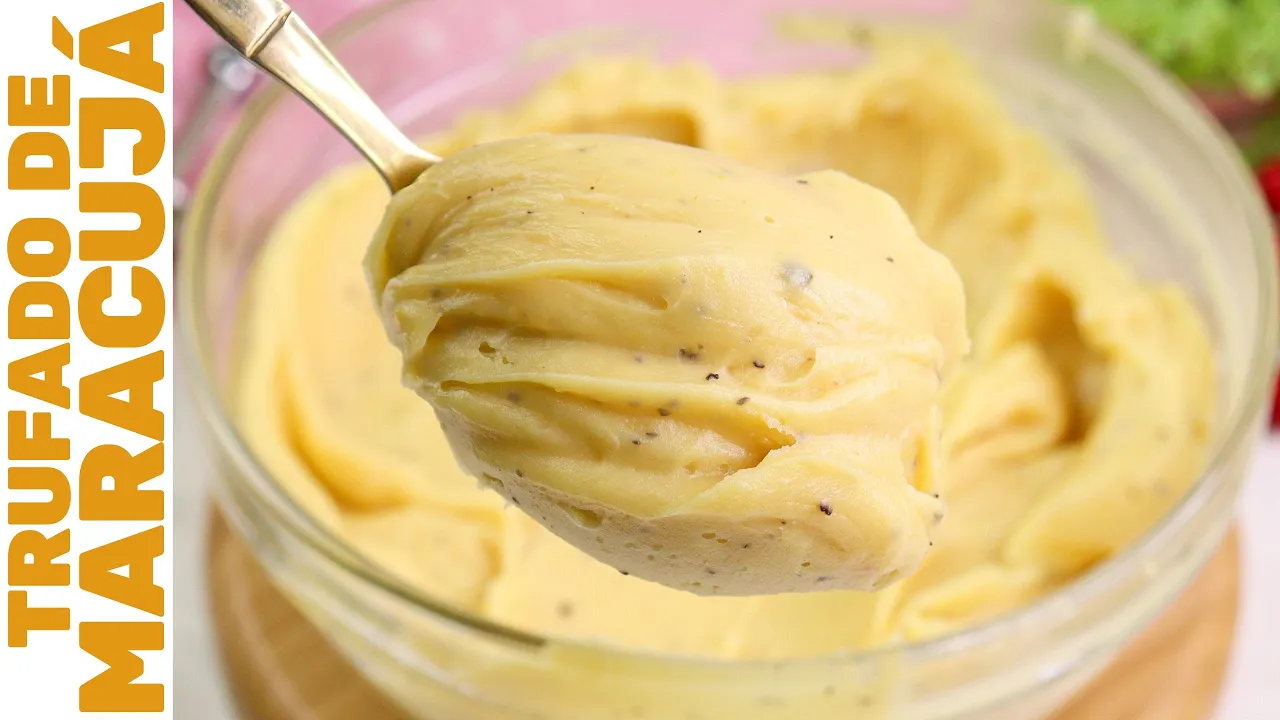 há alguns dias eu trouxe aqui no canal um recheio trufado de Ninho e nos comentários Muita gente me pediu outros sabores de recheios trufados e como seu pedido é uma ordem no vídeo de hoje eu vou te ensinar um recheio delicioso que é sucesso de vendas o recheio trufado de maracujá Ele é super cremoso tem sabor marcante e você pode usar nos seus bolos decorados e também em outros doces do menu Fica de olho que esse vídeo tá repleto de dicas e eu vou te ensinar o segredo para esse recheio não talhar é para tirar