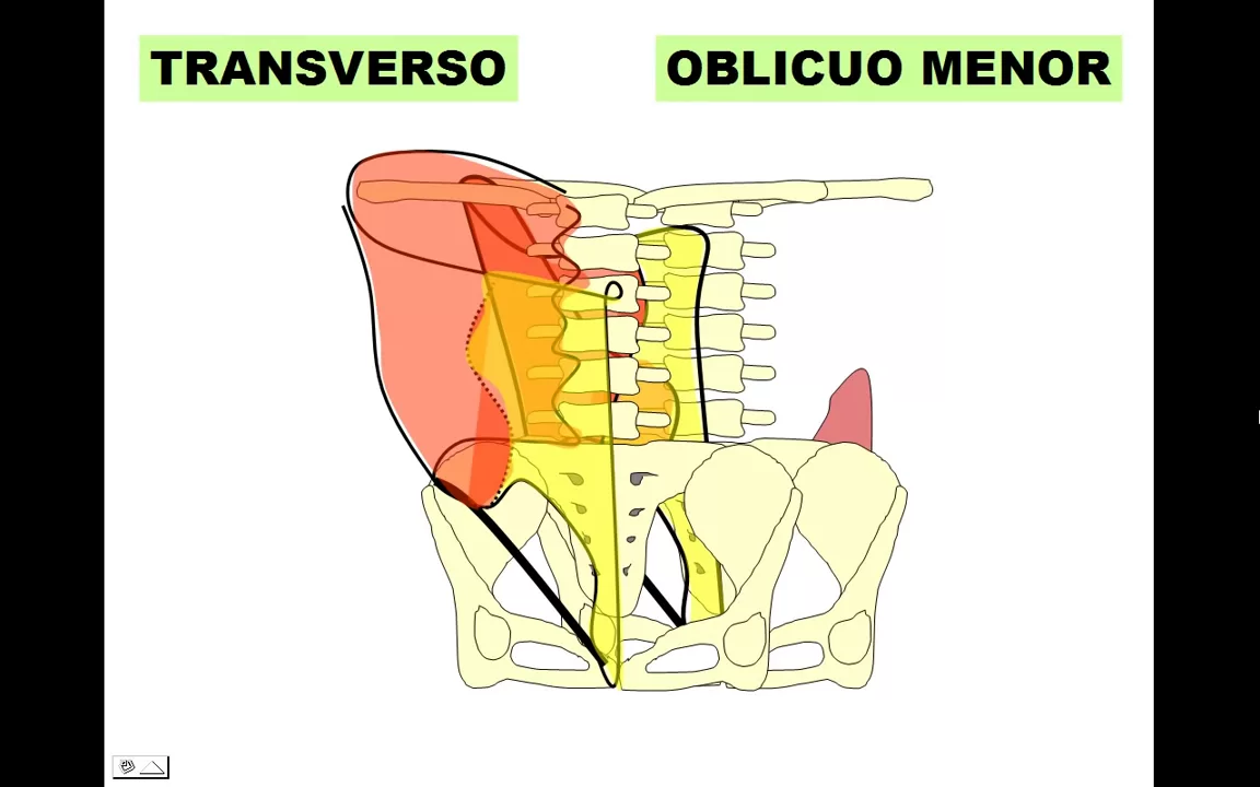 trasverso ocupa toda la parte posterior si avanzamos hacia superficial el oblicuo menor solamente un triángulo y vemos el oblicuo mayor del cual solamente asoma el borde posterior Ahora sí lo saluda Martín lo saludo yo y nos vemos en la próxima entrega que seguimos con esto chao gente hasta luego