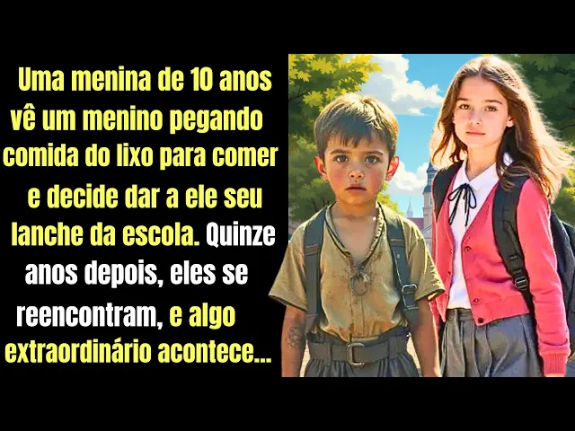 [Música] uma menina de 10 anos vê um menino pegando comida do lixo para comer e decide dar a ele seu lanche da escola 15 anos depois eles se reencontram e algo extraordinário acontece mas naquela manhã nada parecia Fora do Comum para Júlia uma criança de coração puro que carregava a sua lancheira enquanto caminhava pelas ruas do bairro simples onde morava era uma terça-feira ensolarada e o som de Risadas infantis misturava-se ao barulho do trânsito leve Julia andava devagar pensando em como o recreio era sua parte favorita do dia ela adorava compartilhar histórias com suas amigas