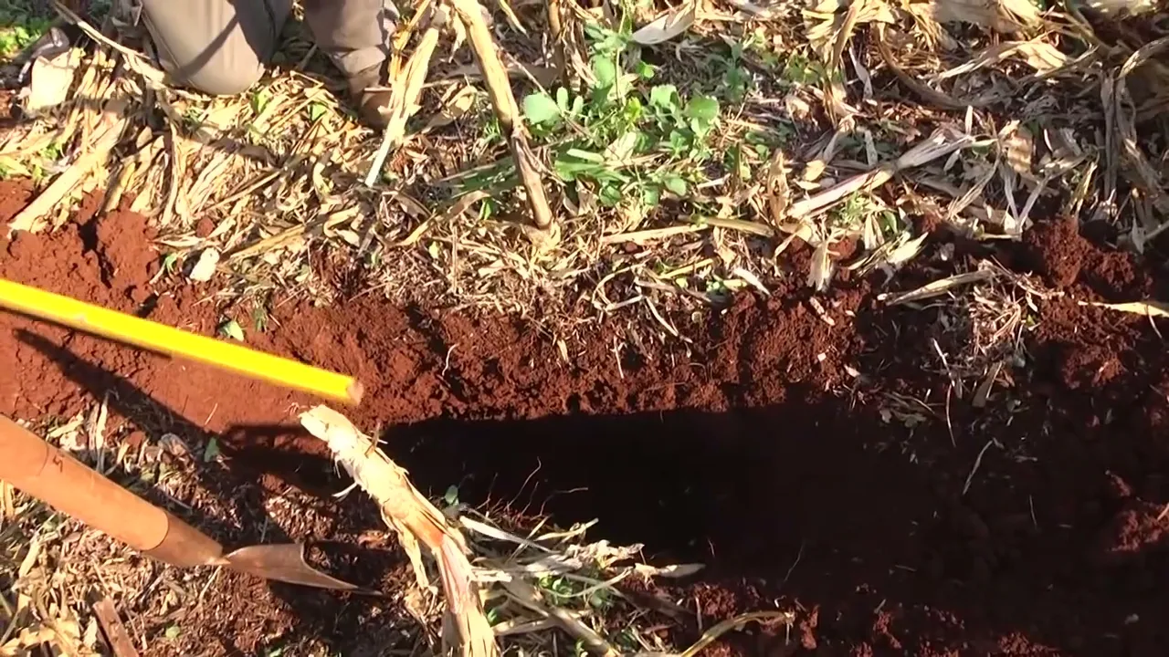 a largura da pa reta e 25 cm de profundidade é isso que nos convencionados como sendo o tamanho da mostra a posição em relação a linha então um pouco afastado da linha para que nós tenhamos um efeito da linha na relação com sistema radicular e etc mas também com relação às operações que foram feitas aqui e a semeadura o sulcamento etc o açúcar e mas também queremos ver como é que está acontecendo na entrelinha então não não deixarmos não são efeito mas esse efeito nos interessa mas o resto também nos interessa distribuição do sistema radicular