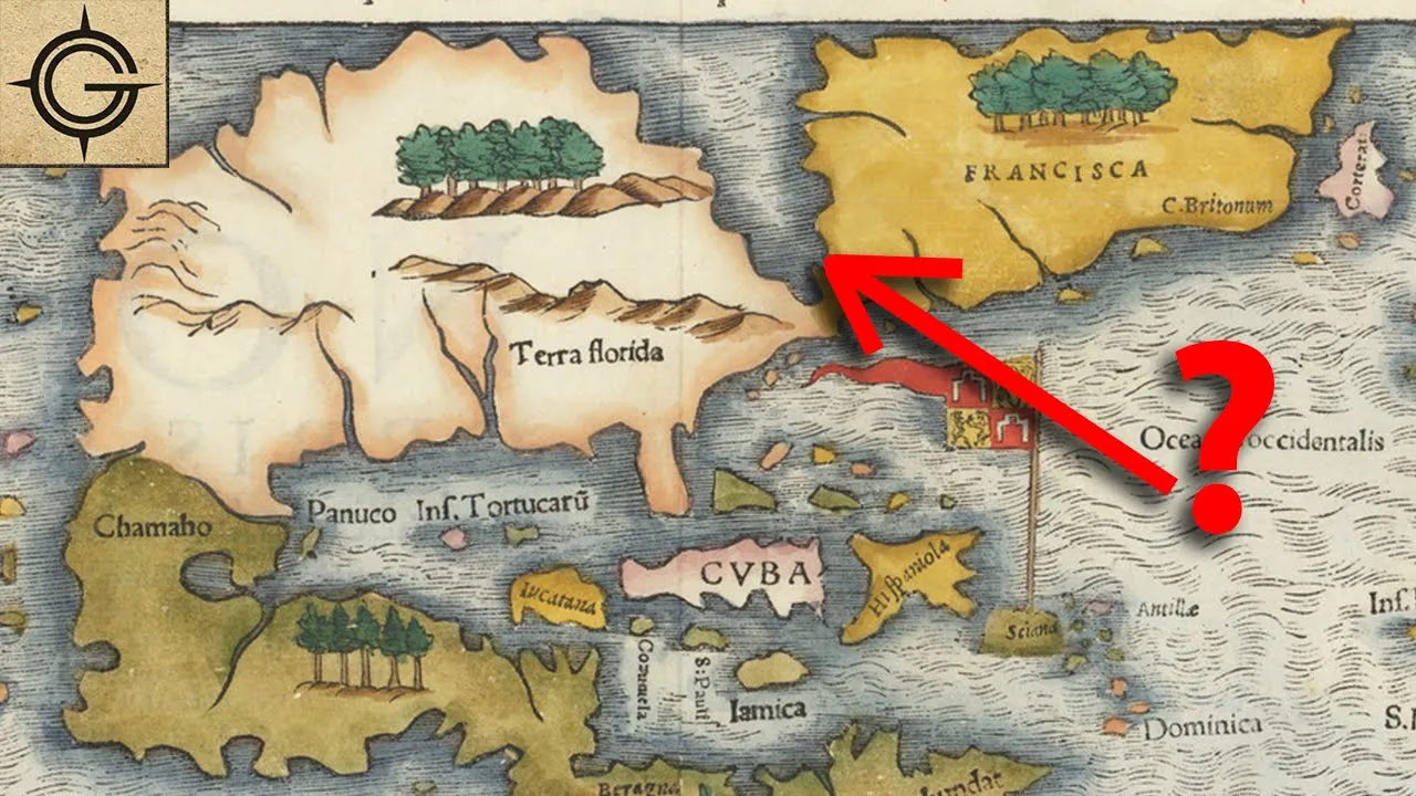 maps from the age of discovery are filled with some pretty interesting geography they had a mass that kept the world from tipping over the north pole had a giant magnetic rock in its center there was even land populated by giants but what i'm about to show you is one of my favorite examples of weird geography on old maps let's go to raremaps. com and click the north american category just two maps down we have a map that doesn't look quite right published in 1544 this map by sebastian munster is accurate enough that you can probably tell that this is north america there is modern day florida cuba and the gulf of mexico just to name a few recognizable places but there is a giant sea right in the middle of it i've covered an inland sea in north america on this channel before but this is something different this sea was discovered by italian explorer exploring on behalf of the french giovanni daverazano we'll begin this story of his discovery in september of 1522. the surviving members of ferdinand magellan's crew had just returned to spain having just circumnavigated the globe for france the competition in trade with spain as well as portugal was becoming more urgent french merchants and financiers urged king francis the first of france to send a voyage to find a quick passage to asia after the discovery of the americas every powerful country in europe wanted to find a faster route to asia through or around the continents in 1523 king francis the first asked verrazano to explore an area between florida and terra nova meaning newfoundland with the goal of finding a sea route to the pacific ocean a few months later verrazano and his four ships set sail due west for the grand banks of terra nova the course chosen in part to avoid the spanish and portuguese but a violent storm and rough seas caused the loss of two ships and damaged the remaining two they were forced to return to france repairs were completed in the final weeks of 1523 and the ships set sail again though under the control of rivals spain and portugal this time the ships headed south toward calmer waters one of the ships soon became damaged again leaving just one which continued on to north america verrazano and his crew reached the area of cape fear on march 21st and after a short stay continued northward and there it was what verrazano had come for in a letter to francis the first verrazano wrote we found there an isms one mile wide and about 200 miles long in which we could see the eastern sea from the ship halfway between west and north this is doubtless the one which goes around the tip of india china and cafe we sailed along this isthmus hoping all the time to find some straight or real promontory where the land might end to the north and we could reach those blessed shores of cathay unfortunately no one could sail right into this eastern sea but at least it would be a short portage but this was pure wishful thinking verrazano and his crew were actually off the coast of north carolina's outer banks what he saw was not an eastern sea but what we call today pamlico sound but verrazano continued his mission northward to look for another passage he was the first european to sail into new york bay today a statue sits in his honor in battery park in lower manhattan he discovered cape cod bay then followed the coast up to modern maine southeastern nova scotia and newfoundland he then returned to france on the 8th of july 1524 without finding a northwest passage but believing only a narrow ismus blocked their way verrazano named the region that he explored francesca in honor of the french king verrazano went on to have a couple more voyages one to south america and a third to florida and the caribbean verrazano perished on the third but there are conflicting accounts on how verrazano actually died in one version after he explored florida the bahamas and the lesser antilles verrazano anchored out to sea and rode ashore probably on the island of guadalupe he and the handful of his crew that went ashore thought the island was uninhabited but they were killed and eaten by the natives the other ships in the fleet were anchored out of gunshot range and so they were unable to intervene in time and instead were forced to watch them be chopped to pieces other accounts suggest that verrazano may have been executed by the spanish for piracy the sea of verrazano only survived on maps for a few decades but interesting theories on how asia could be reached through or around north america had just begun thank you raremaps.