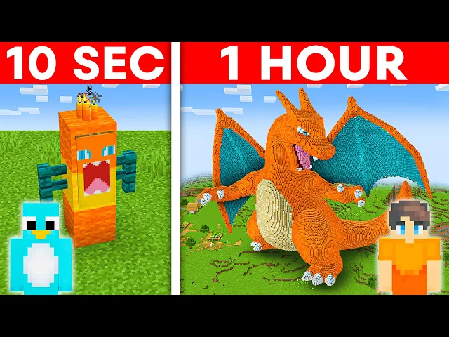 10 Seconds vs 1 Hour - Pokemon Build Challenge in Minecraft