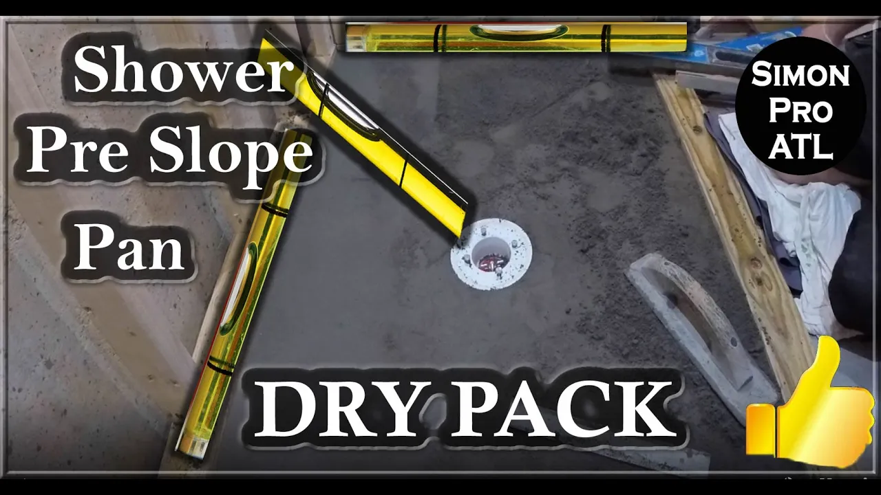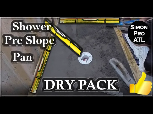 and how to do it right what the pre- slope does it basically levels the area around the shower walls and provides gradual slope towards the drain that it's waterproof and bonded with it okay guys whenever you work with a new area first thing is you want to find out what you're dealing with you want to take the 4ot level and just place it around the shower floor to find out how level that area is usually the concrete floors are going to be a lot better than your plywood s floor that sometime is from a quarter