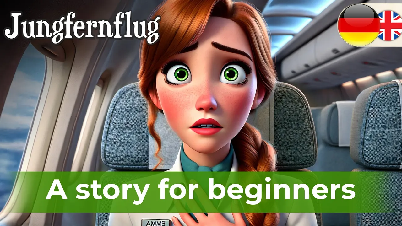 Himmel let listen the story with translation repat erster Flug first flight es war einmal ein Mädchen namens emmaemma [Musik] Emma lebte in der Metropole mit ihrer Mutter und ihrem Vater [Musik] ihre Eltern arbeiteten am Flughafen und liebten es mit Flugzeugen zu [Musik] fliegen sie hofften dass Emma Flugbegleiterin werden würde aber Emma hatte ein Geheimnis sie hatte Angst vom Fliegen weil sie keine Höhen mochteed als Emma älter wurde ging sie zur Flugschule Emma beschloss Flugbegleiterin zu werden ihre Lehrer waren freundlich und ihre Klassenkameraden nett aber immer wenn sie über das Fliegen Sprachen wurde Emma nervös sie