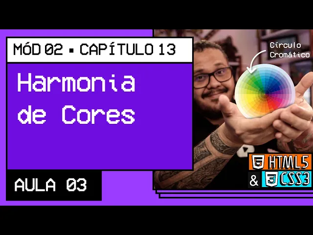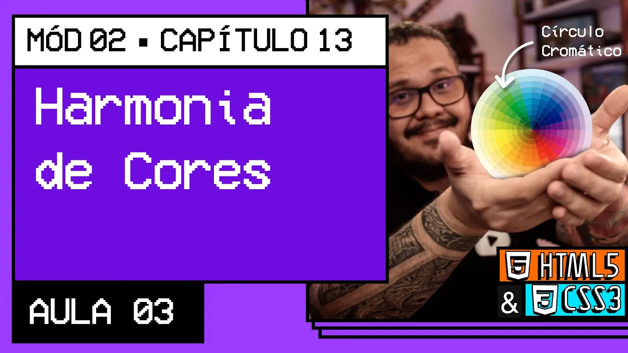 o que isso é mais um vídeo que diz respeito ao capítulo 13 Então já pega o seu caderno porque eu acho que nessa aula você tem bastante anotar [Aplausos] E aí [Música] o Olá tudo bem com você seja bem-vindo seja bem vindo a mais um vídeo aqui que a gente tá falando sobre cores que você fosse HTML e CSS e nessa parte agora a gente vai falar sobre a harmonização de cores ou Harmonia de cores porque na maioria das vezes porém de aprende a desenvolver sites a gente aprende a representar as cores exatamente como a