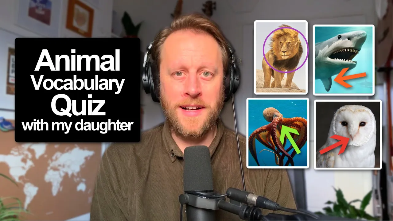 asked you before they're all going to come up during the episode so all this stuff made me think that there is quite a lot of specific vocab relating to animals so that's what we could focus on so what you're going to hear is my daughter and me U taking an animal vocabulary quiz with various questions about different words for Animals animal parts where They live what they do the sounds they make uh words for groups of animals and plenty more and I'm sure that there's a lot of vocabulary for you to pick up from this