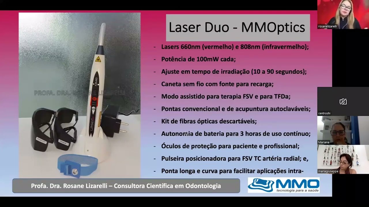 gente eh tá fazendo isso pessoal da fisioterapia tem pessoal da Odonto tá gente quem for da Odonto tem também tem protocolo tem material no site que a gente tem no caso da Odonto a gente tem o laser duol que é bem eh parecido né trabalha com essas duas luzes então vocês podem buscar lá esse material Tá bom acho que é isso né Dri isso a a Rebeca perguntou que de aula de acupultura Rebeca ainda nós não temos mas a gente tá procurando algum profissional para para essa área para dar uma aula pra gente então ok
