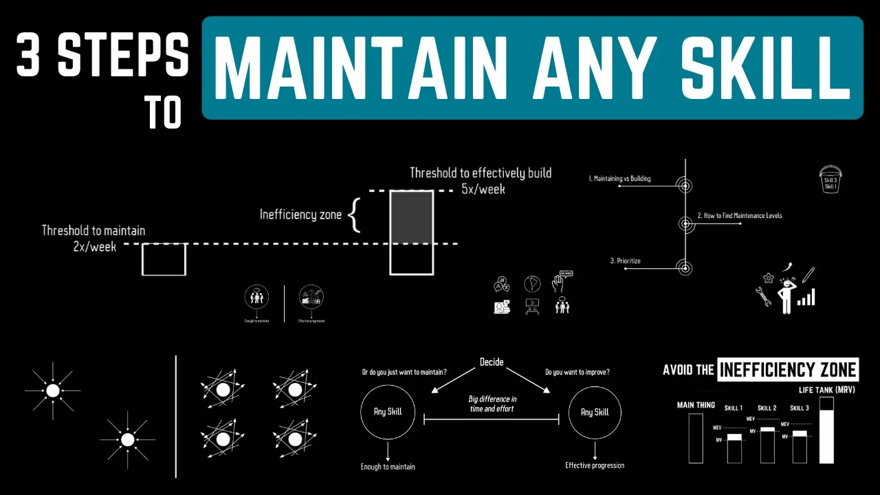 do you ever feel overwhelmed by the need to constantly improve your skills we all want to level up but the reality is that life gets busy priorities shift and sometimes we just want to enjoy what we already learned without the pressure of getting better in this video I'll discuss how to maintain your skills efficiently allowing you to allocate your freedom time and energy to other Pursuits whether that is focusing on one skill or a few skills or simply to relax and have fun before diving in let me just clarify what I mean by maintaining and