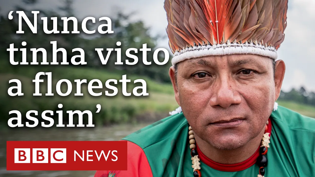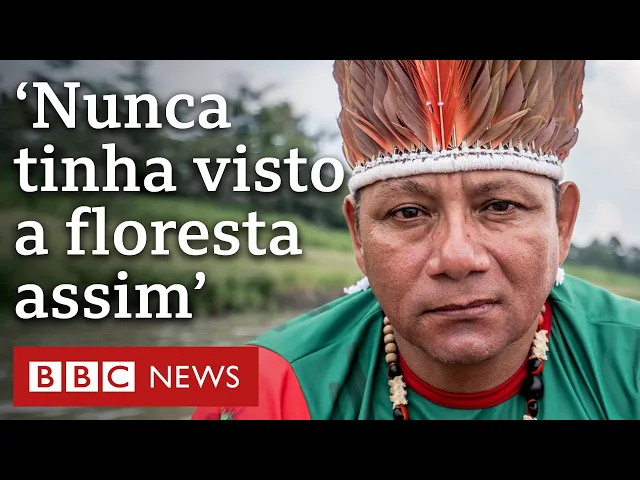 Oliveira Tikuna está nos levando para a sua aldeia A viagem dura cinco horas pelo menos costuma durar A Floresta Amazônica está passando pela pior seca já registrada Os rios, lagos e riachos da região estão secando Nunca tinha tido essa seca, com essa proporção. Nós nunca tinha visto. Nem história.