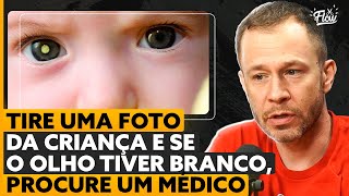 coisa de criança de 0 a 5 anos tá E aí como é que tu descobriu foi no susto cara eu tava em casa almoçando e a Lua tava no colo da babá dela na minha frente e entrou luz pelo lado luz da janela Lu era um bebê agora era um bebezinho ela devia ter oito meses por aí e aí eu vi aquele um reflexo branco no olho dela em vez da pila preta eu vi como se fosse uma bolinha de gude Como se eu tivesse enxergando o fundo do olho dela e eu olhei e falei
