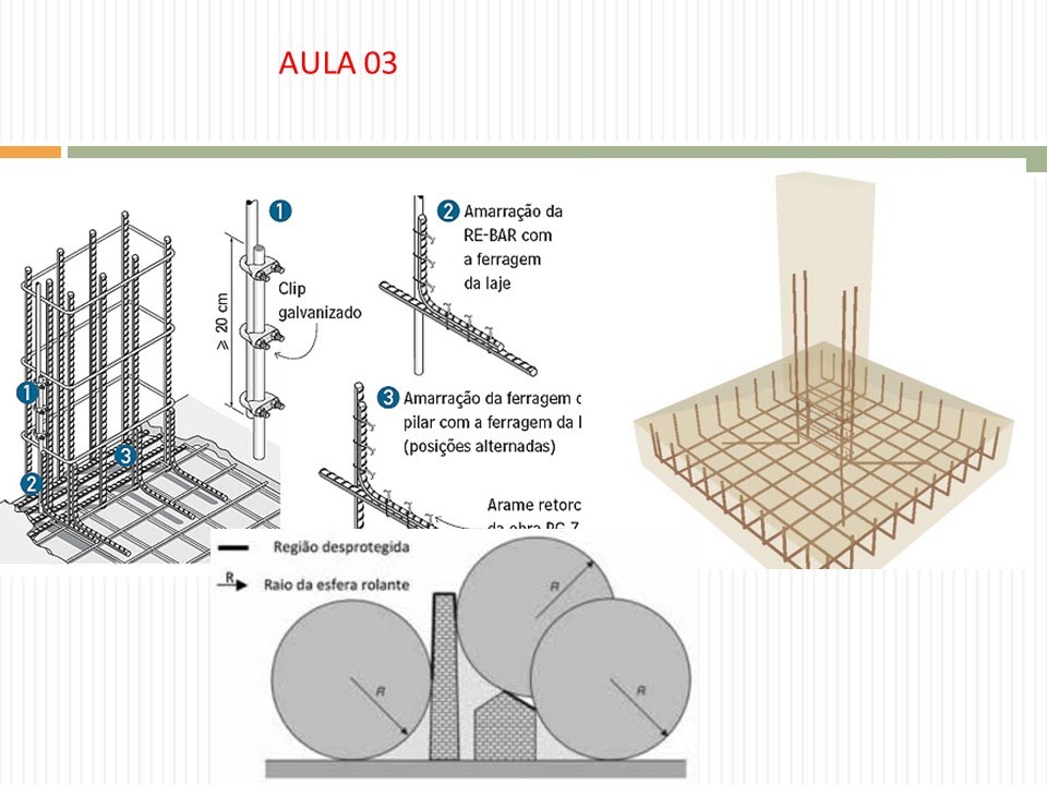 br então as descidas podem ser ligadas direto no corpo da edificação né o dano provocado é o mesmo quando eu tenho os distanciadores a norma gente estabelece a norma estabelece que as descidas devem ser colocadas nas Quinas como eu tinha comentado anteriormente e as demais espaçadas conforme exige a norma naquela tabela Então quando você vai fazer um projeto de spda quantas descidas aquela edificação quantas descidas eu tenho ter naquela edificação uma descida por Quina que é o que exige a norma e as demais descidas conforme aquele cálculo que é o perímetro dividido pela distância entre as descidas você vai espaçar elas conforme a distância estabelecida naquela tabela anterior vamos agora um exemplo de cálculo de descidas vamos imaginar uma edificação comercial Tem um errinho aqui pessoal olha comercial Olha uma edificação comercial e proteção nível um né de proteção nível dois de proteção mais descidas con de proteção Tem um errinho aqui então uma edificação vamos corrigir é uma aula nós estamos fazendo e gravando uma edificação comercial e proteção nível 2 possui um perímetro de 140 M quantas descidas são necessárias veja bem o número de descidas é calculado pelo perímetro dividido pela distância só ratificando novamente uma edificação comercial e proteção nível do tá gente não é nível um nível do possui um perímetro de 140 metros quantas descidas são necessárias então eu vou calcular n é p sobre D onde n é o número de descida pegando a tabela da NBR 5419 nível 2 de proteção me dá um espaçamento médio entre as descidas de 15 m fazendo o meu cálculo eu tenho n = 140 di 15 isso vai me dar 9 33 gente sempre que o número não for inteiro aproxime pro número imediatamente superior e inteiro então 9. 33 descidas deve ser arredondado para 10 descidas no mínimo posso colocar mais mas no mínimo 10 descidas não é então a gente conseguiu já fazer o dimensionamento de quantas descidas Quantos cabos de descidas ou na verdade Quantas fitas de descidas capa de alumínio eu vou ter nessa edificação uma edificação comercial Corrigindo o nível dois de proteção que eu tô aqui na tabela bem amarelinho espaçamento 15 fazendo o cálculo com perímetro de 140 9. 33 deve ser sempre arredondado pro número imediatamente superior 10 descidas bom E aqui eu tenho o exemplo da edificação o perímetro e eu tenho as descidas se vocês contarem aqui 1 2 3 TRS lado se 6is com qu 10 descidas a norma prevê uma descida em cada vértice Então tá aqui eu passando o mouse na primeira segunda descida terceira descida quarta descida depois as outras descidas o meu desenho tá proporcional aqui elas são separadas de 15 M aqui Olha tá vendo o nível dois de proteção 15 M entre as demais descidas então gente a gente consegue com essa pequena fulaz determinar no meu spda né naquela edificação e dentro do nível de proteção escolhido para aquela edificação Qual é o número de descidas necessárias a norma sempre estabelece no mínimo né você tem que fazer o a as descidas sempre no vértice ou na quina e as demais descidas elas devem ser espaçadas né nesse meu exemplo de 15 M entre elas bom a norma aqui eu tô colocando embaixo ela estabelece que as descidas devem ser localizadas nas Quinas principais da edificação e as demais gente distribuídas ao longo do perímetro com espaçamento regulares de acordo com o nível de proteção é o que eu tô colocando aqui eu coloco uma descida em cada vértice ou Quina e as demais descidas eu faço né a distribuição ao longo do perímetro com espaçamentos regulares de acordo de 15 M nível de proteção aqui nível do qual é o espaçamento 15 M portanto gente a gente consegue né determinar o total de descidas né numa edificação em função ao do seu nível de proteção bom aqui eu tenho alguns exemplos né exemplos reais então eu tenho uma figura aqui e nessa figura vocês podem observar nessa figura tô passando o mouse nós temos as descidas olha as descidas e aqui vocês podem olhar que tem uma cinta em cima ó passando o mouse aqui vamos explodir essa cinta é uma cinta de alumínio essas descidas são descidas podem ser descidas de alumínio cinta de alumínio dá um acabamento muito bom E aqui onde eu tô passando o mouse vocês podem observar eu tenho aqui os captores né eu tenho aqui o meu mastro onde eu passei o mouse aqui ó mastro tem aqui meus captores eu posso espaçar aí eh um captor a cada 8 m captor inho de de cinta de alumínio também né Eh essa figura Então ela me dá uma visão de das descidas Olha uma descida em cada quina né se a gente olhar no desenho tem uma duas três mais cinta de alumínio né tem dois quatro são seis descidas né então é muito importante a gente observar essas descidas que elas podem ser de chapa de alumínio aqui do lado eu tenho uma foto real tem uma parede aqui onde eu tá descendo uma cinta olha um cabo de descida ó uma cinta de de alumínio Olha a cinta descendo olha aqui do lado eu tenho até uma são fotos cedidas pela prevetec né prevetec Brasília né que está atuando agora no mercado de Brasília né Eh a única região que ela não atuava então a prevetec doou pra gente algumas imagens de descidas aqui eu tenho descida em cinta de alumínio tem aqui descida em em Cabo de de Aço galvanizado não é então aqui eu tenho a minha descida a fonte eh retirada dessas informações aqui passadas para vocês né é da www.