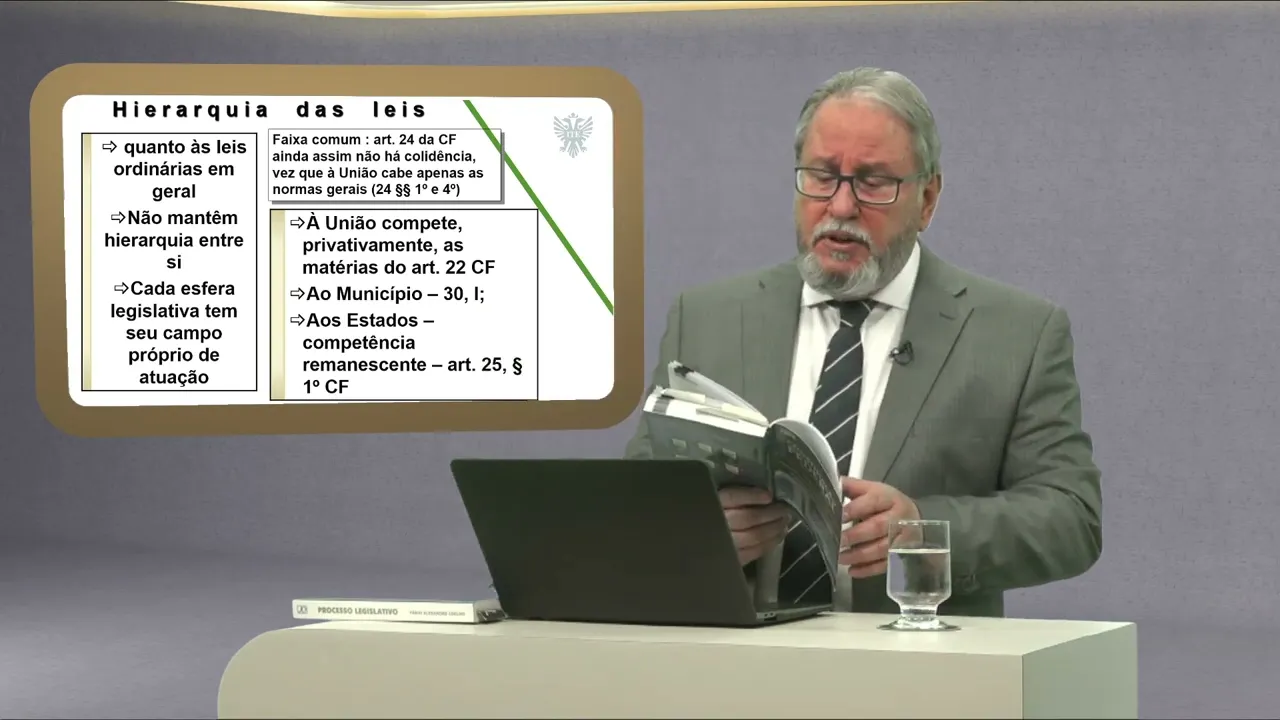 vimos emendas leis complementares vamos cair no campo das leis ordinárias em geral elas não mantém hierarquia entre si né Todas têm o mesmo valor e cada esfera Legislativa tem o seu campo próprio de atuação nós sabemos que a união tem um campo próprio dos Estados tem um campo remanescente os municípios tem um campo próprio que nós vamos ver na nossa sequência né Então olha a união compete as matérias do artigo 22 da Constituição então eu vou lá no artigo 22 está escrito compete privativamente a união legislar sobre direito civil comercial penal processual eleitoral Agrário marítimo