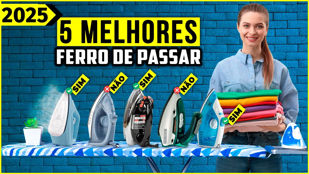 procurando por um ferro de passar roupa e não sabe qual escolher para ajudar você nós do comprou avaliou fizemos vários testes Até chegar na lista dos cinco melhores modelos do mercado atualmente mas antes de conhecer o top cin lembre-se de se inscrever e dar um like isso nos ajuda a trazer mais guias todas as [Música] semanas em quinto lugar nós temos o Oster GCS TBS 5907 se você desejar um ferro de passar roupa bom e barato essa é a melhor opção sua base antiaderente com microfuros permite um deslizamento suave e rápid rpo enquanto o cabo