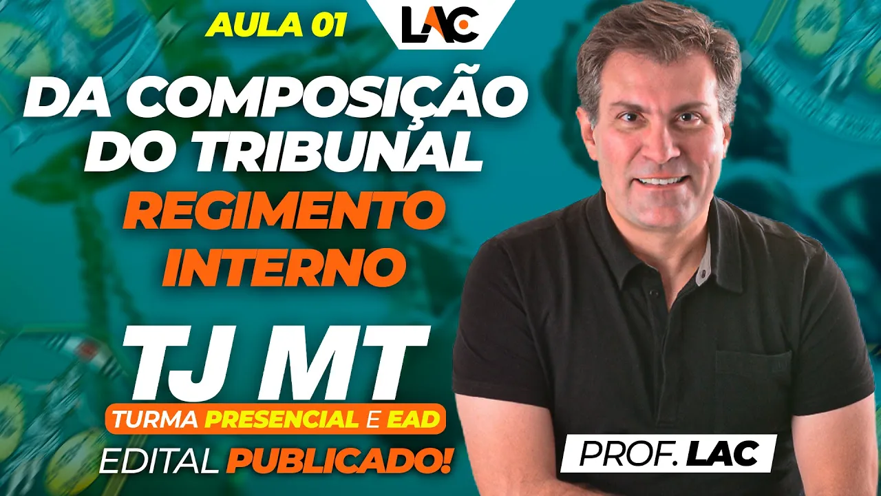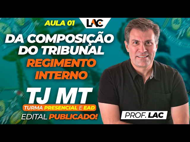 Olá meus amigos minhas amigas eu sou professor lak com muito prazer muita satisfação vamos para mais uma videoaula uma videoaula bem específica sobre o Regimento Interno do Tribunal de Justiça do Estado de Mato Grosso com certeza eh Nesta aula aqui nós Será objeto de várias questões de prova porque tradicionalmente todos os concursos tribunal tribunais né eles costumam cobrar bastante esse tipo de matéria Então vamos lá Regimento Interno do Tribunal de Justiça né Professor fonte bibliográfia fundamentação Duas né primeiro a lei orgânica a lei eh o código de organização judiciária que é a lei 4964 de