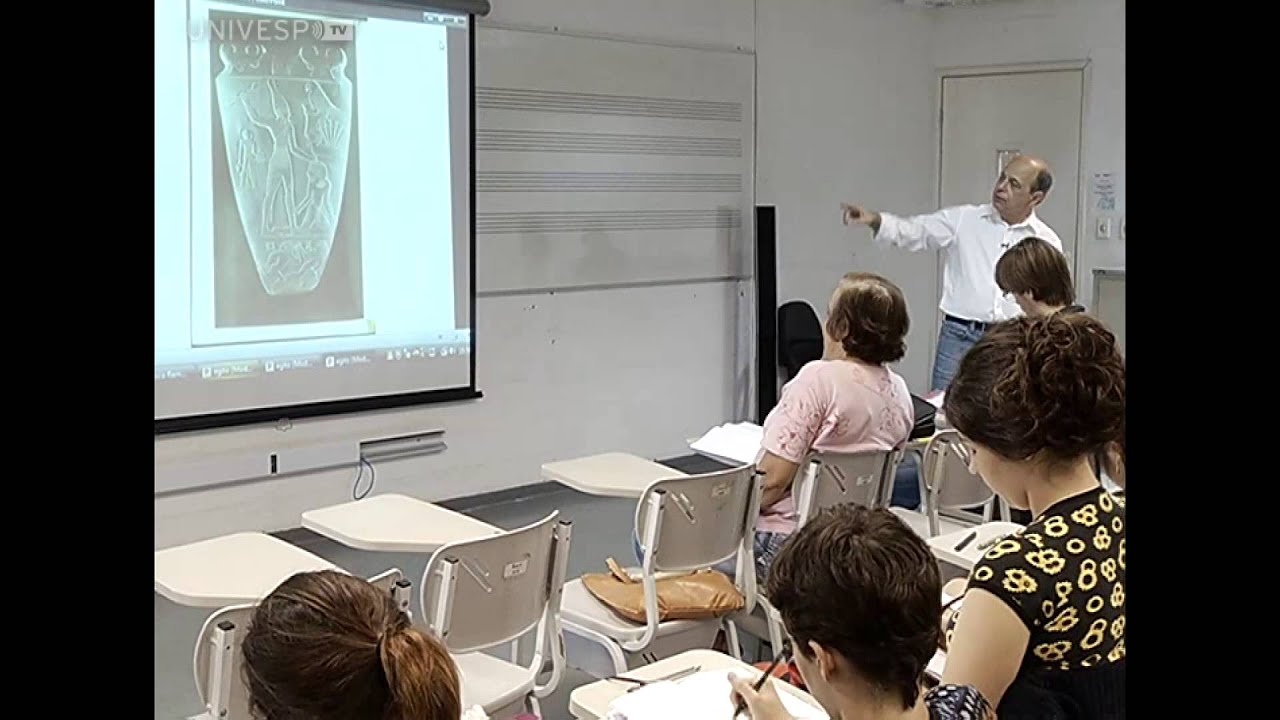 circular em torno dela a gente não precisa de circular no espaço se deslocar no espaço para perceber b-la é inteiramente Então é isso é por isso que tem esse paradoxo é de escultura bidimensional e essa forma de escultura bidimensional ela vai permanecer mesmo na Grécia tal até a partir de um certo momento Quando surge a síntese grega quando pinta ali quando aparece o tempero grego quando apareceu a novidade grega aí A escultura efetivamente vai deixar de ser bidimensional mas os gregos a princípio eles têm um diálogo Muito estreito com os cânones egípcios inclusive na as