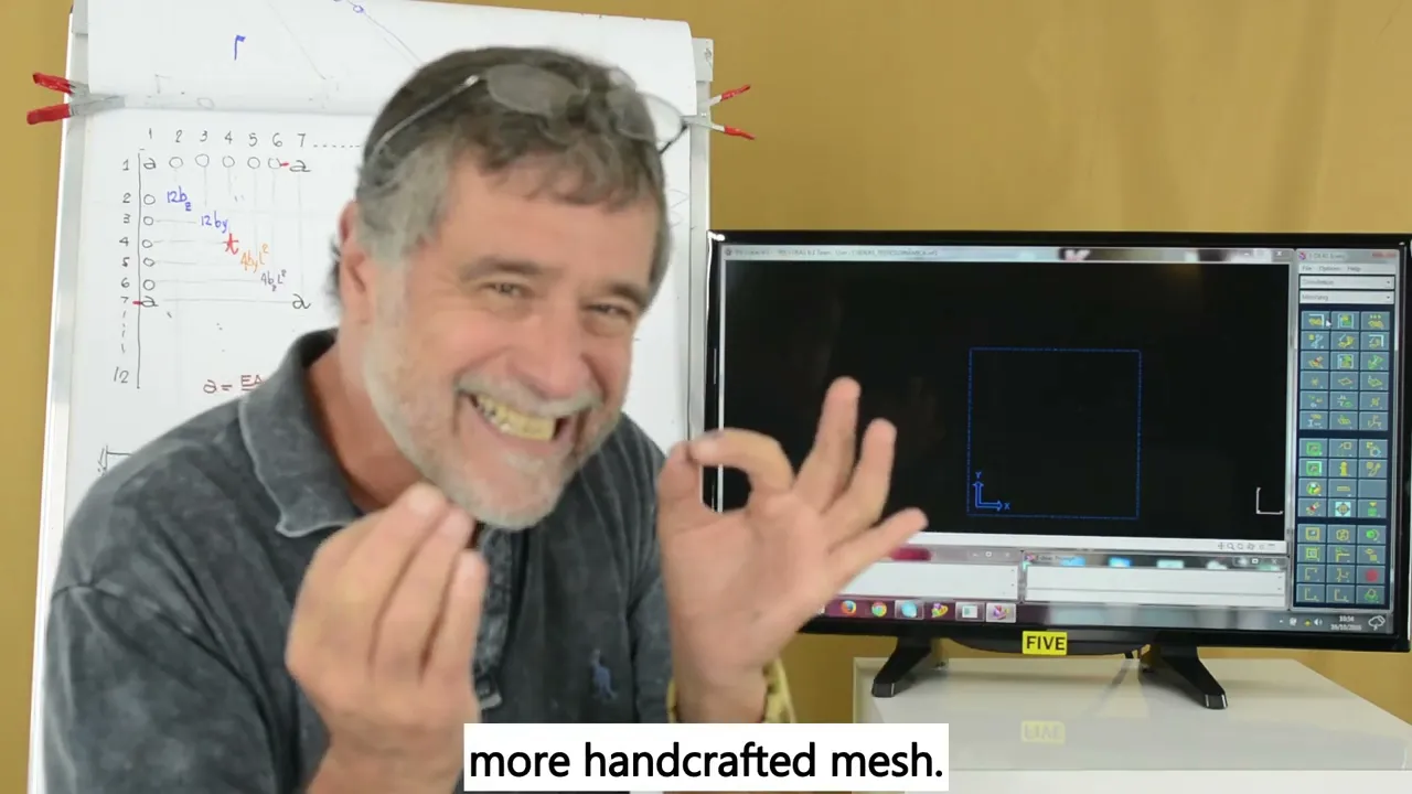 nós vamos fazer uma malha mais artesanal eu não vou criar uma malha em cima de uma geometria Mas vamos criar uma malha seguindo aquela sequência daquele quadro que a gente montou eu tenho uma estrutura eu vou dividir em elementos a partir da rigidez de cada elemento eu Monto a rigidez do Conjunto O determinante É zero eu aplico a restrição eu aplico o carregamento eu ponho para rodar um modelo no E aí eu interpreto os resultados é isso que nós vamos fazer Tá certo então o que que acontece aqui neste software quando nós estamos agora na