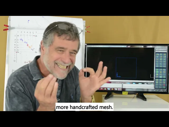 também o que que acontece do ponto de vista prático quando você trabalha com software na década de 70 quando eu comecei trabalhar com elementos finitos mais propriamente em 1974 esta coisa aqui que é a malha eu fazia a mão fazia a mão eu desenhava no papel a malha dava o número de cada um desses nós numerava os nós numerava os Elementos e criava uma série de cartões para poder fornecer para um software né que tava armazenado num computador de grande porte que era o mainframe todos os dados do modelo e os dados saíam impressos no