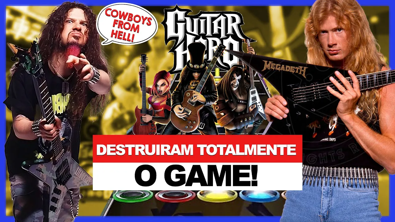 [Música] f o Guitar Hero 1 podemos dizer que foi uma coisa assim mais underground feito na Paixão o que resultou como eu bem disse em versões assim meio bizarras dos clássicos do rock mas era uma experiência a mais uma coisa diferente de simplesmente sentar no sofá e conduzir um bonequinho numa jornada Épica principalmente para quem tinha uns cobre a mais aí Conseguiu comprar o kitzinho [Aplausos] completinho no ano seguinte saiu o Guitar Hero 2 em novembro de 2006 e numa paulada só o game ganhou uma popularidade gigantesca dentro da cultura [Música] po o tois conta