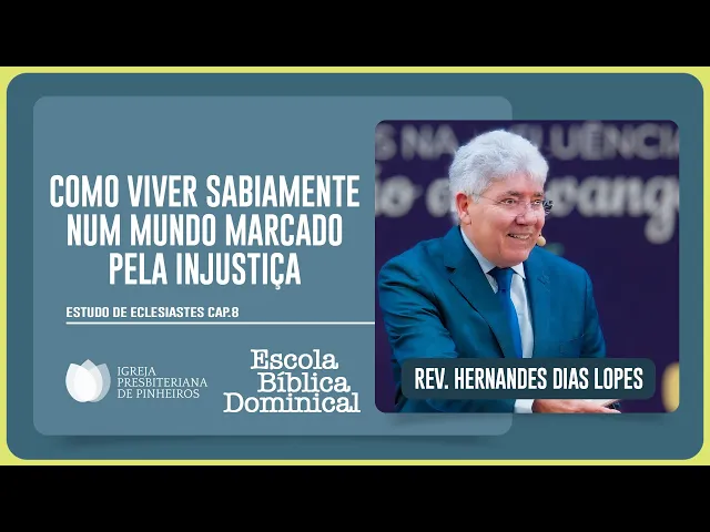 [Música] muito bem meus irmãos nós vamos dar início Então à nossa escola bíblica dominical deste domingo 25 de Agosto salvo melhor juízo dia do soldado de 2024 aqui na Igreja Presbiteriana de Pinheiros Vocês são muito bem-vindos e aqueles que estão nos acompanhando também são muito bem-vindos o de hoje Eclesiastes Capítulo 8 Abra sua Bíblia comigo para fazermos a leitura e a exposição desse texto Eclesiastes Capítulo 8 está escrito o seguinte quem é como Sábio e quem sabe a interpretação das coisas a sab do homem faz reluzir o seu rosto e muda-se a dureza da sua
