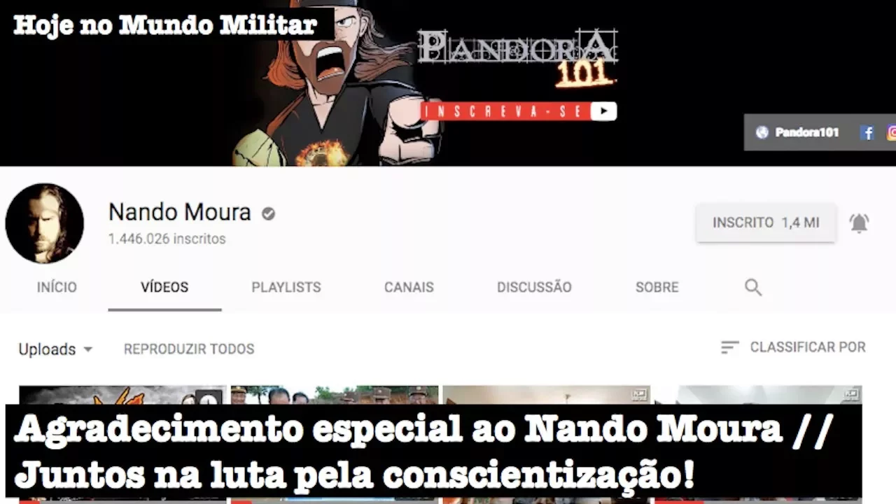 é chamar a atenção para problemas e situações importantes por isso mais uma vez o meu obrigado ao nando moura por dar mais visibilidade a esse canal para seguirmos juntos nessa luta de conscientização e você também pode ajudar compartilhando e falando do canal do nando moura e do hoje no mundo militar com seus familiares e amigos muito obrigado e até breve [Música]