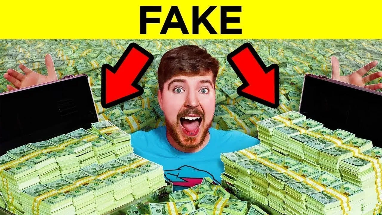 olhos atentos notaram algo super suspeito Se você olhar bem de perto vai ver que as notas de dólar que o Mr Beast distribui na verdade diz em motion picture em vez de United States of America então sim as notas que o Mr Beast estava generosamente distribuindo eram só notas falsas de scenografia mas o que tá acontecendo será que o Mr Beast está mentindo para nós todos esses anos bom sim e não muitos foram rápidos em chamar Jimmy de fraude mas ele na verdade tinha uma explicação bem razoável ele disse corretamente que dar milhares de Dólares
