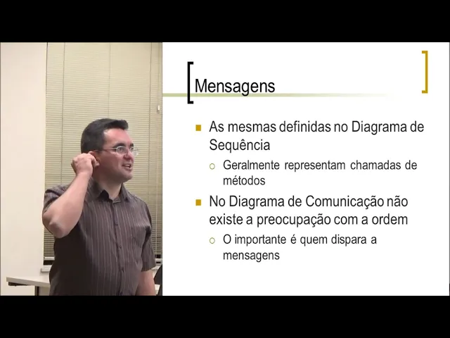 o objeto x tenha um relação com o objeto y e se comunica de alguma forma estão vinculados a eles precisam conversar pra execução da funcionalidade do processo foi modelar também tem esse conceito que o modelo ao processo o processo pode ser preso em caso de uso não é tão comum seus órgãos de comunicação para falar um caso de uso porque você não tem essa idéia ao temporal mas é você usa um determinado processo mensagens ou objectos podem aparecer também o ator que diz para manu fica claro que a olha o temporal que as coisas são