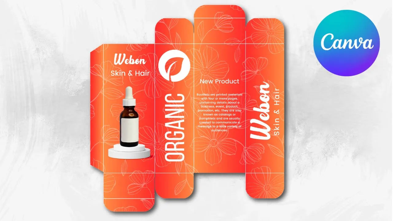 let's change the pH to BBS change the color to white and increase the letter spacing rotate this [Music] Tex and add your description here and make your brand name here [Music] [Music] and after add in our product image and this the description go to elements and type Laural pattern and you can choose any style you want prze change the color to white go to layers sh layers and make this pattern behind all these elements go to the transparency and lower as you [Music] want and here is the final results I hope you like this tutorial