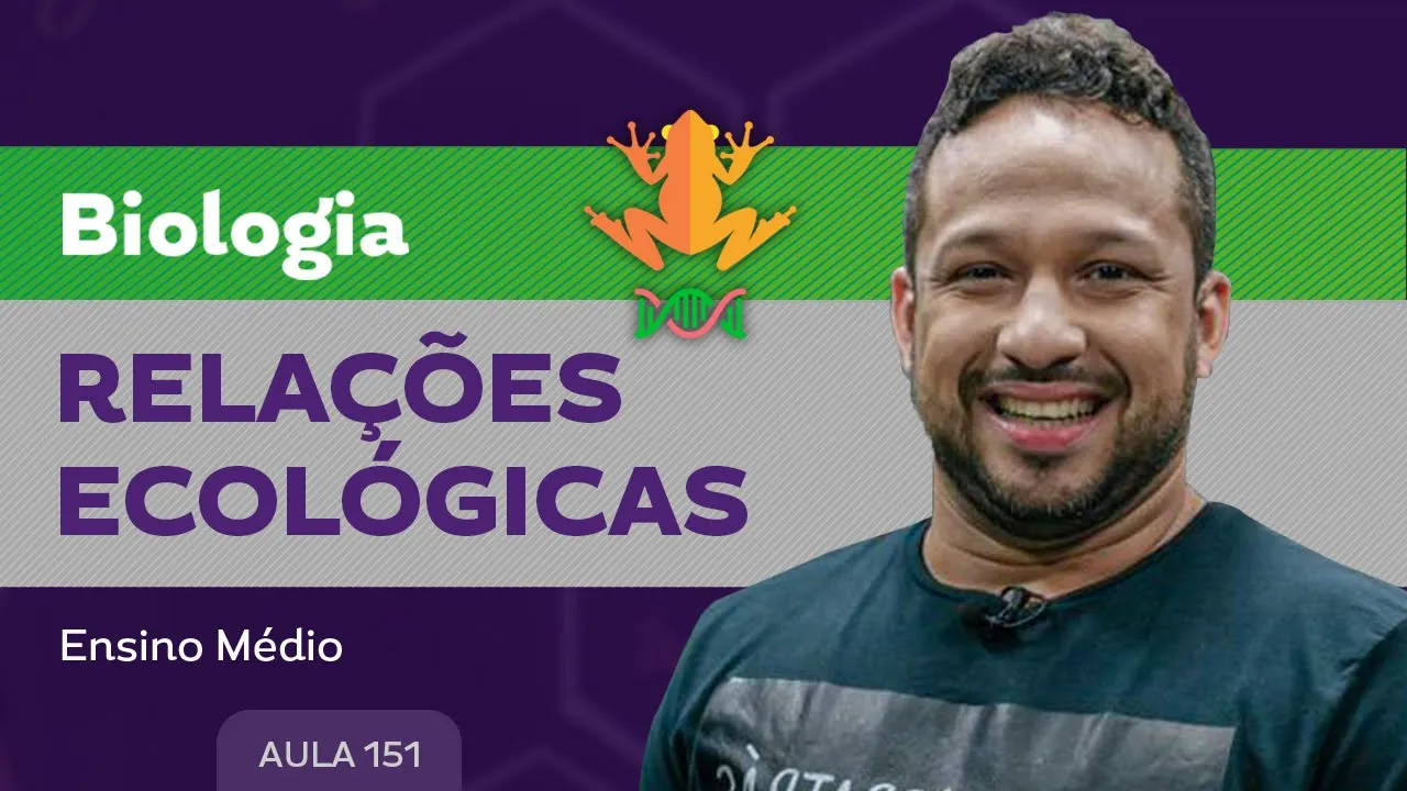 e fala pessoas e aí tudo certo aqui é o professor Andrei e agora a gente vai falar sobre as relações ecológicas Ei relações ecológicas e assim quando a gente trabalha com as relações ecológicas a primeira coisa que a gente tem que lembrar que isso vai ser as relações entre os seres vivos no ambiente Mas aí o que é que vocês vão ter que ter muita calma quando a gente trabalhar com essa coisa de relação é porque essas relações elas junto e classificações então preste atenção olha pra cá o primeiro grupo das relações que a gente