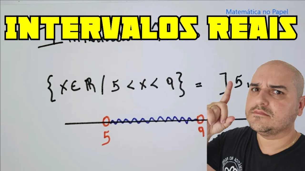 vamos aprender de forma bem fácil e objetiva vamos aprender com matemática no papel olá pessoal hoje nossa vida aulas sobre intervalos reais para entender intervalos reais a gente tem que entender que algumas formalidades algumas formas de representação desses intervalos vamos lá a primeira forma que eu vou ensinar para vocês essa aqui dos conjuntos e todos aqui ó abre chave x pertence aos reais todos conjunto então os x pertençam conjuntos reais tal que x esse traço aqui ó simbolizar o que é certo tal que x é maior do que 5 em x é menor que 9