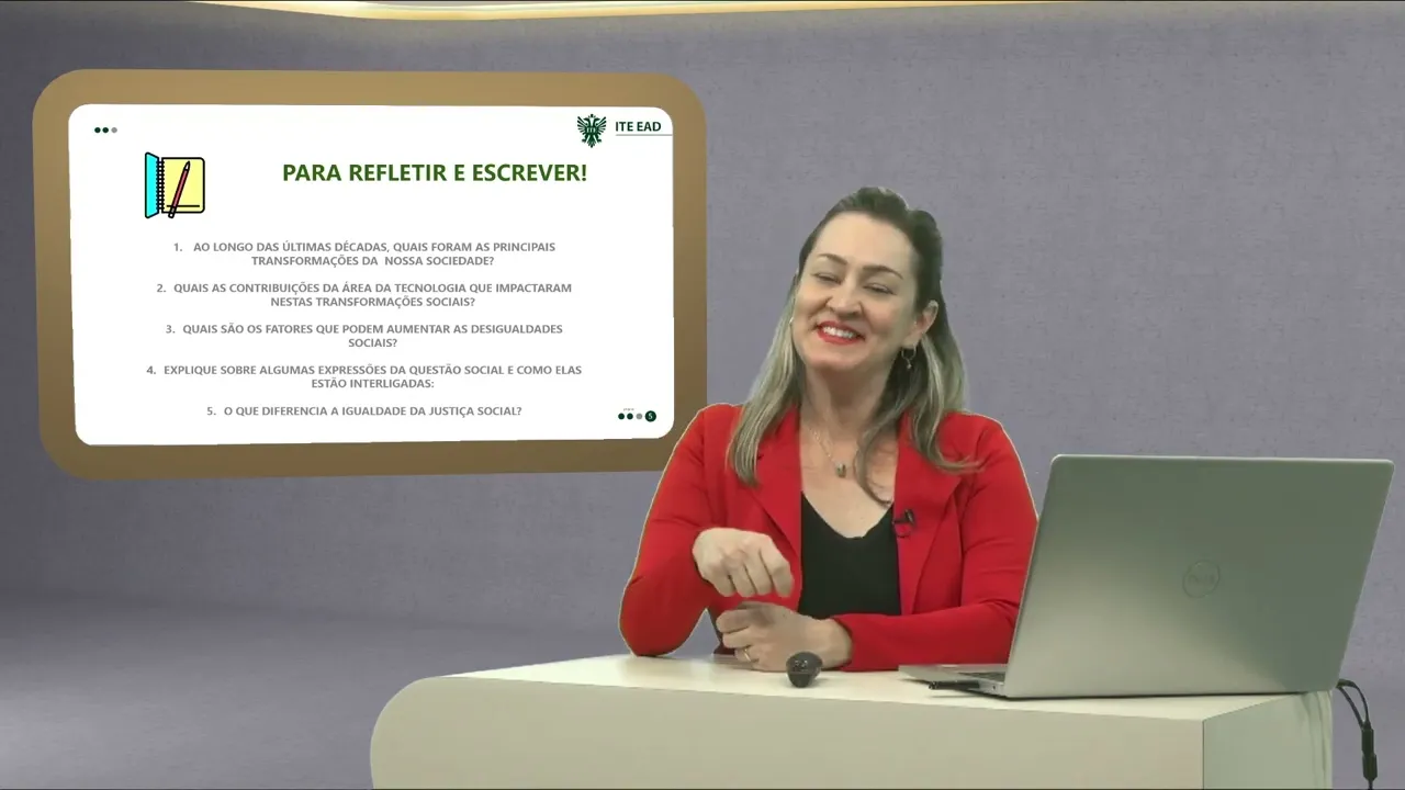 você enquanto estudante também vai ter essa propriedade para continuar fazendo algumas pesquisas e observando também um pouco mais a nossa segunda reflexão que como eu disse você vai aí anotando refletindo e participando mais ativamente dessa nossa aula a segunda questão é quais são Então as contribuições que a área da tecnologia né que a tecnologia impactou nesse movimento nessa transformação social já deixei um pouquinho aí um spoiler né do que você pode responder mas também é pensando nesse sentido o que que temos através das tecnologias incentivado que essas desigualdades sociais elas continuam elas perpetuem bom a