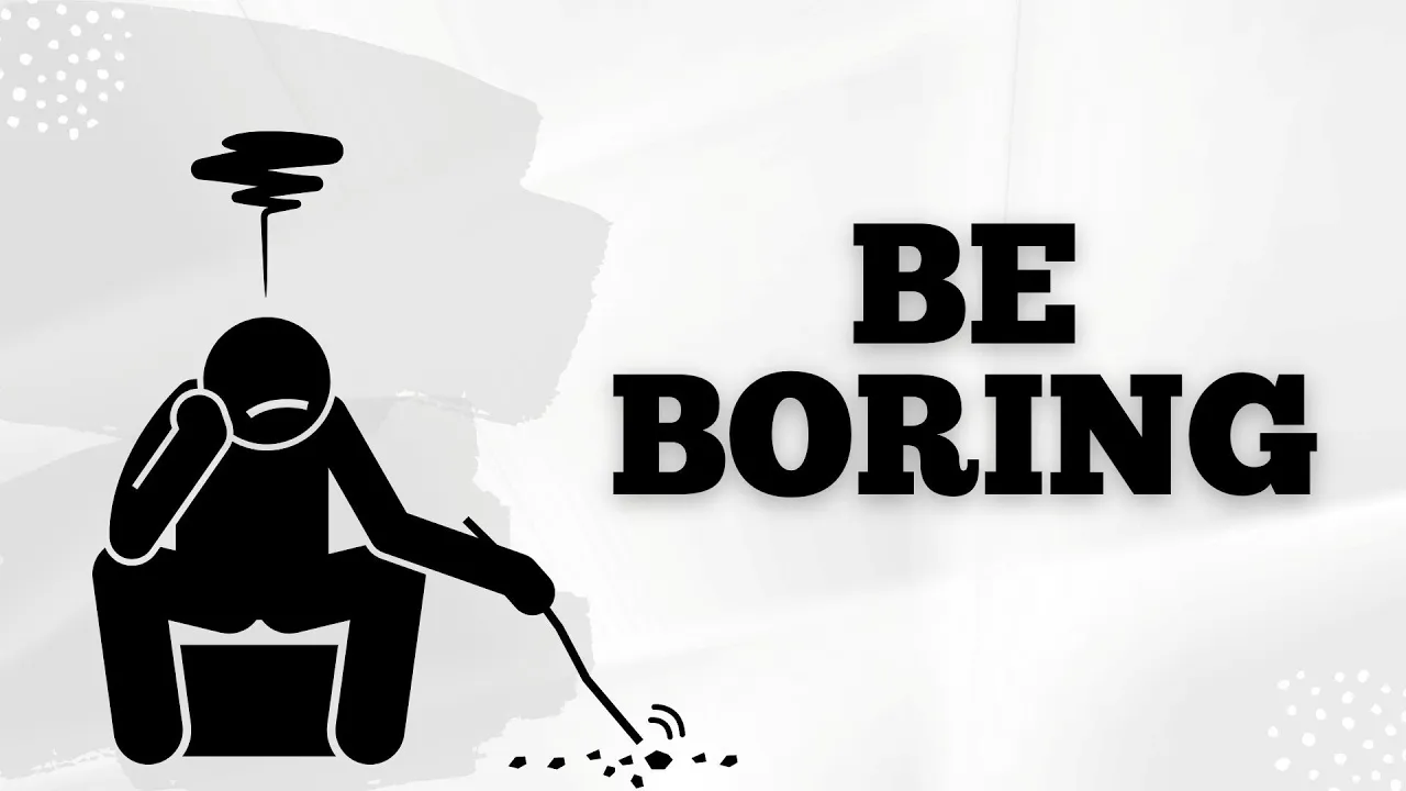 when was the last time you were bored maybe right before this video generally speaking being bored is seen as a bad thing we're constantly told to be more productive if you're not running your own company or traveling through the world then you're seen as boring or should I say a failure but what if striving to be boring was actually the most productive thing you could do I don't mean being a boring person with zero personality but boring the sense of doing things which are perceived as boring to society because it's doing the simple yet so-called